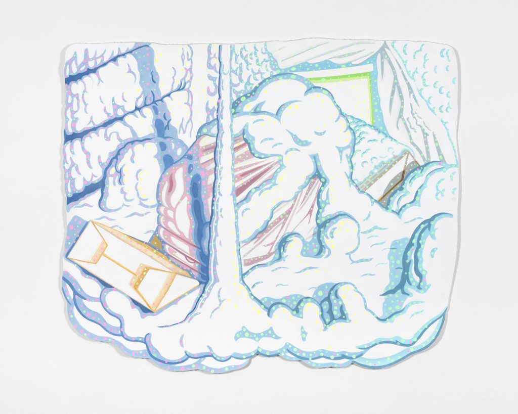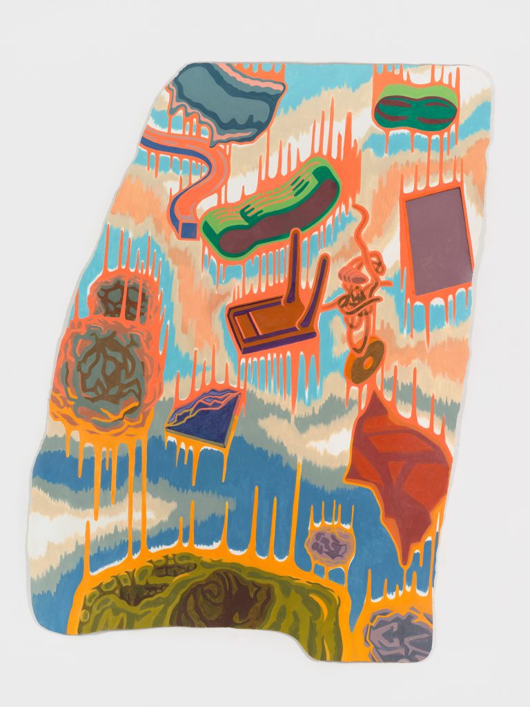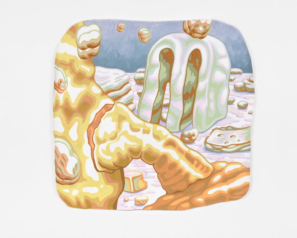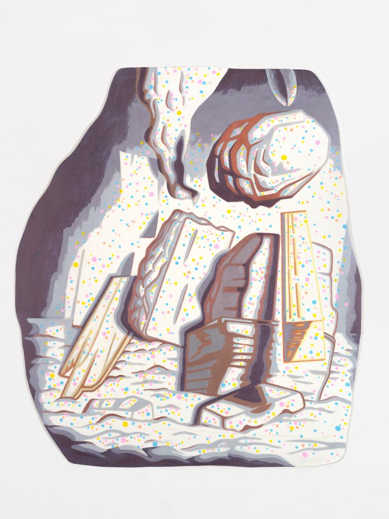 Bennema: ”Het zijn van die dingetjes die iedereen wel in huis heeft die onderweg zijn richting de vuilnisbak, maar die je nog niet hebt weggedaan. Je weet niet wat je met die spullen aan moet en tegelijkertijd koester je er een liefde voor. In het schilderij ‘Things Falling’ heb ik in fluorescerende kleuren objecten geschilderd die aan het kapot gaan zijn in een soort vrije val. Het zijn dingen uit mijn eigen huishouden. Ik probeer me te verhouden tot waar ik onderdeel van uitmaak. In ‘Freezer’ heb ik het ijslandschap geschilderd dat je aantreft in het vriesvak van je koelkast, een tafereel dat je liever niet ziet. In ‘Claytrial’ heb ik een klei-installatie van Urs Fischer (Zürich 1973) dat ‘Ja’ heet als uitgangspunt genomen; gekke bizarre bouwwerken van klei die half uit elkaar vallen, verdrogen en verkruimelen.”