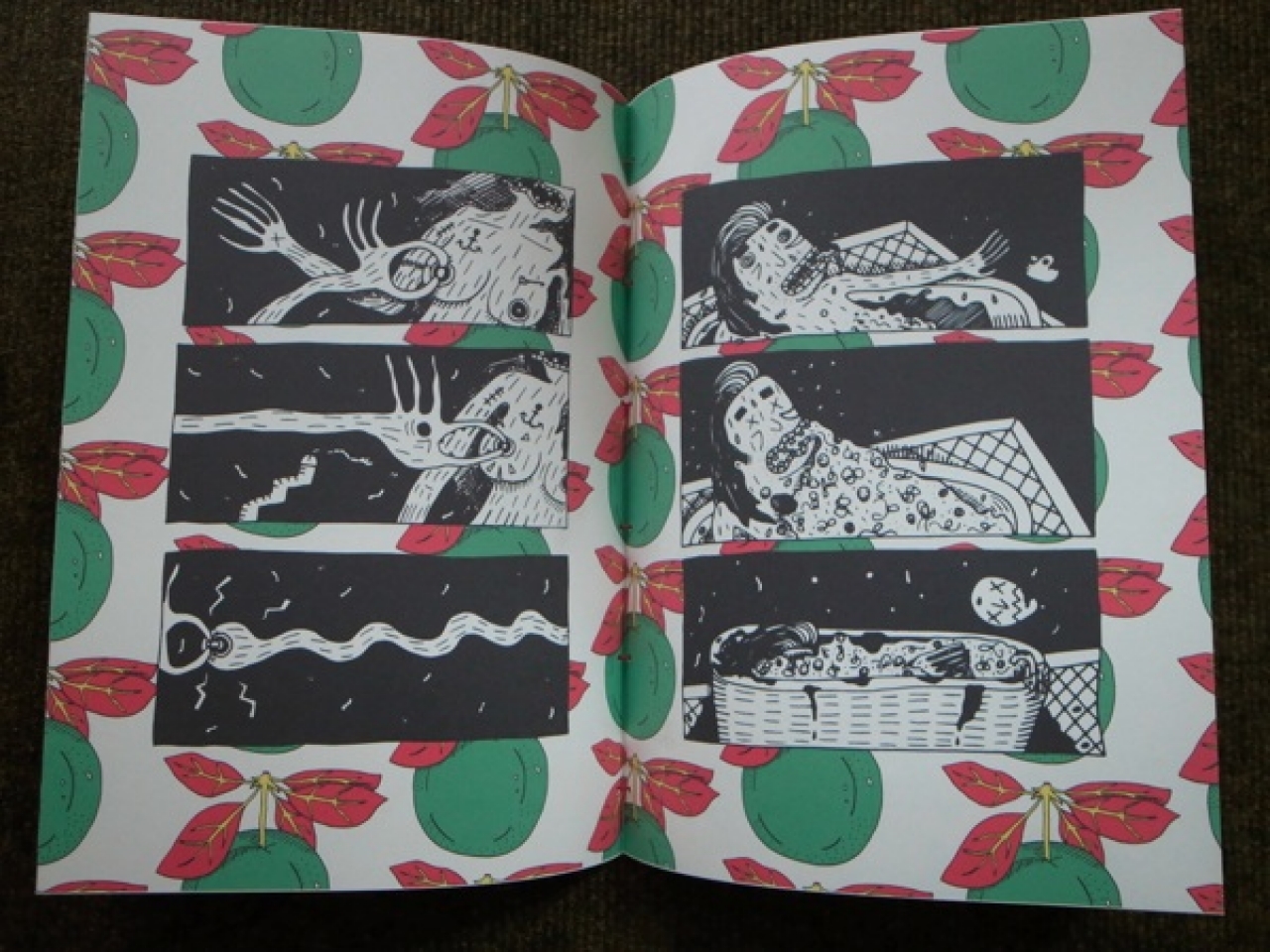 ‘The final work evolves from illustration to installation, the two dimensional aspect unfolds into space and furthermore creeps onto people as it expands into our immediate reality.’ lees ik in scriptie.