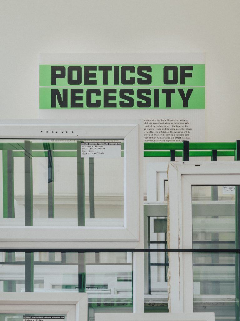 In het Poolse paviljoen wordt onder de noemer Poetics for necessity direct samengewerkt met Londenaren. Zij worden gevraagd ramen te doneren voor gebouwen in Oekraïne waarvan de ruiten beschadigd zijn door het oorlogsgeweld. Omdat het installeren van ramen in oorlogsgebied gepaard gaat met de nodige problemen – zo is het vaak niet mogelijk om een steiger te bouwen aan de buitenkant van een woning of ander gebouw – zijn er verschillende architectonische oplossingen ontwikkeld. Door de ramen van binnenuit te plaatsen of schuin met een geïmproviseerde vensterbank, als de raampartijen te groot zijn voor het kozijn dat ze moeten vullen.