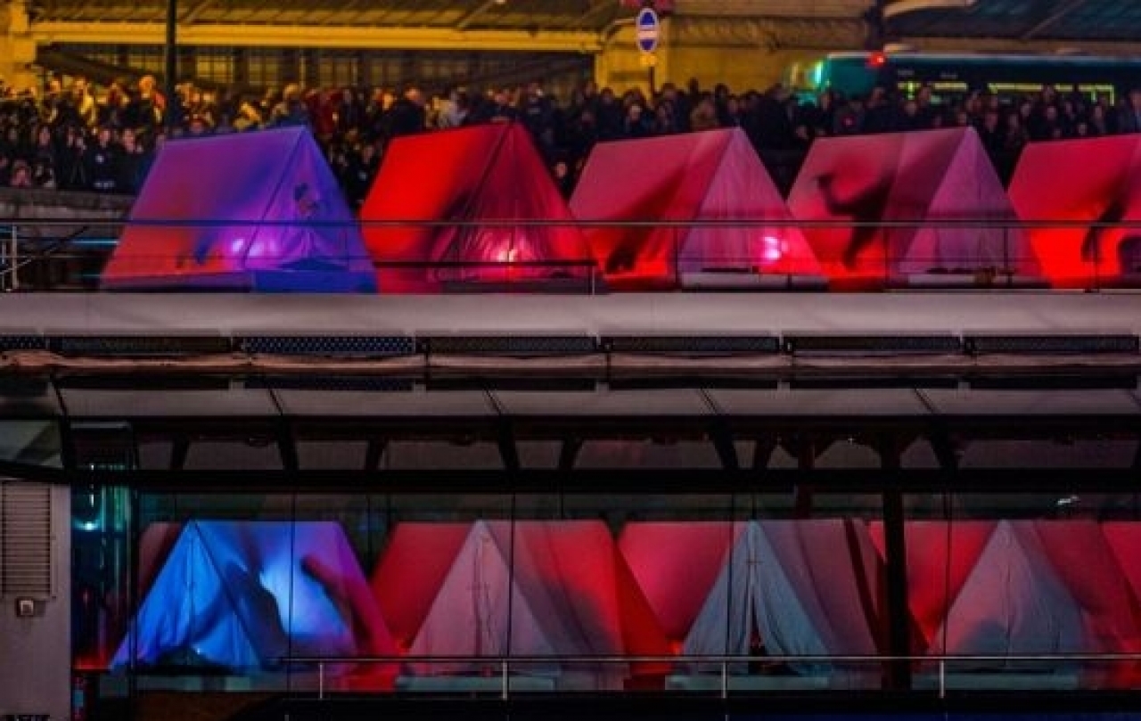 Kunstenaar Guo-Qiang laat in zijn werk One Night Stand vijftig stellen de liefde met elkaar bedrijven, terwijl het publiek toekijkt. Geen afgetrainde pornoacteurs, maar mensen zoals jij en ik konden zich aanmelden voor de performance. De honderd mensen vieren na een vuurwerkshow – als metaforische voorbode op wat erna komen gaat – de liefde in kleine tentjes op het dek van een schip op de Seine. Een spectaculaire plek, ja, maar niemand hoeft het Kamasutra-boek uit zijn of haar hoofd te kennen om indrukwekkende manoeuvres uit te halen. Gewoon is meer dan genoeg, de missionaris voldoet. In iedere tent kan de lamp worden aangedaan, waardoor een subtiel silhouet van het vrijen wordt geprojecteerd op het doek. Het zware, fluwelen gordijn dat Courbet’s alledaagse naakt ooit wegstopte, is een speelse, semi-transparante sluier geworden. Nu is het wachten op het moment dat het doek daadwerkelijk valt.