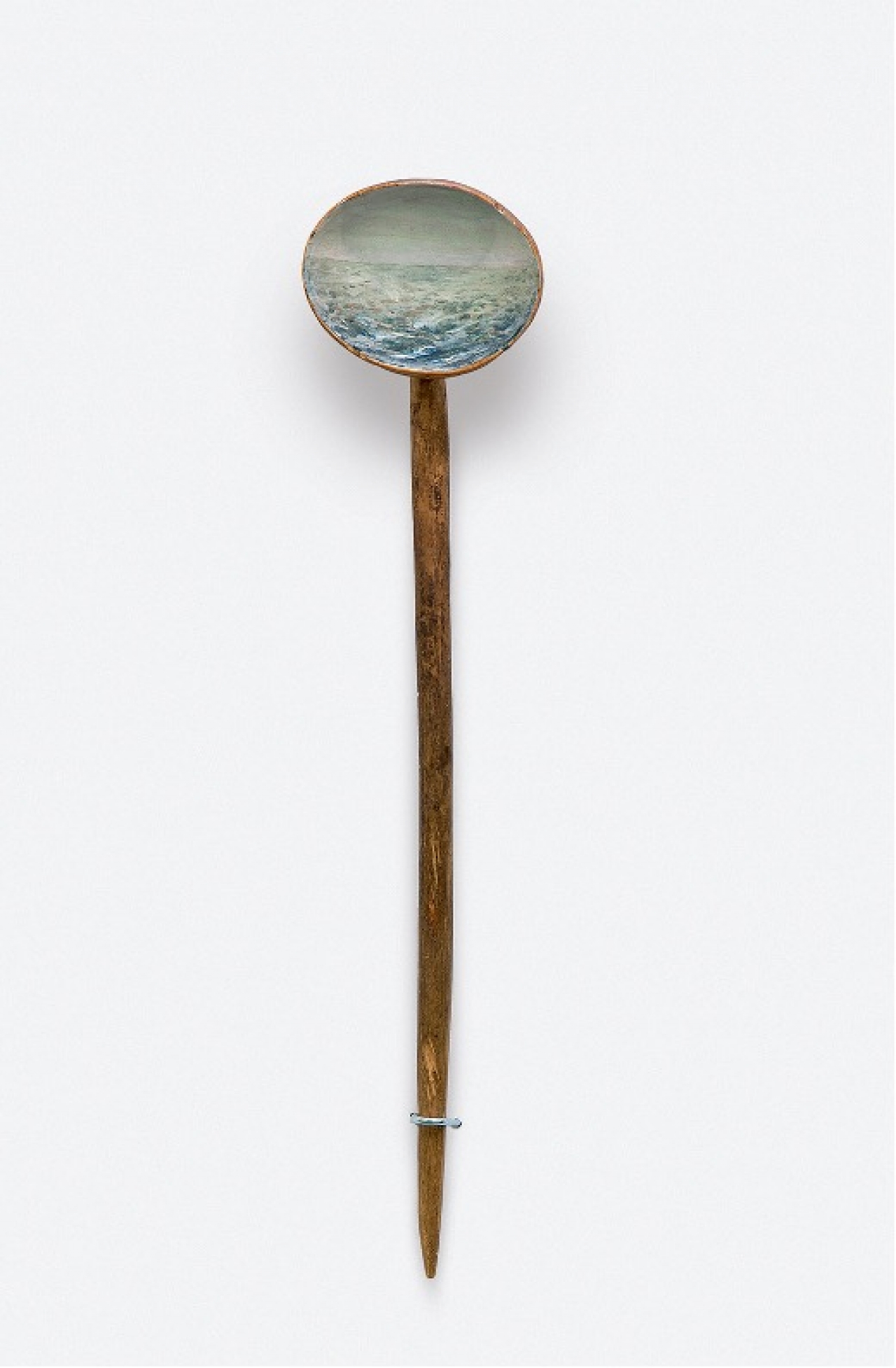 Dan die binnenkant. Daar staat een statische afbeelding op, of ín, eigenlijk. De afbeelding is aangebracht in een olie-substantie uit vermoedelijk eind twintigste eeuw (deviatie tot 2010) maar in een techniek en stijl die veel ouder moet zijn. De afbeelding beweegt dus niet, dat is ongebruikelijk, maar over de voorstelling twijfelt Kara helemaal niet. Hier in de daglichtlamp kan ze het goed zien, ze hoeft het niet door de beeldbank te halen: het stelt de zee voor.