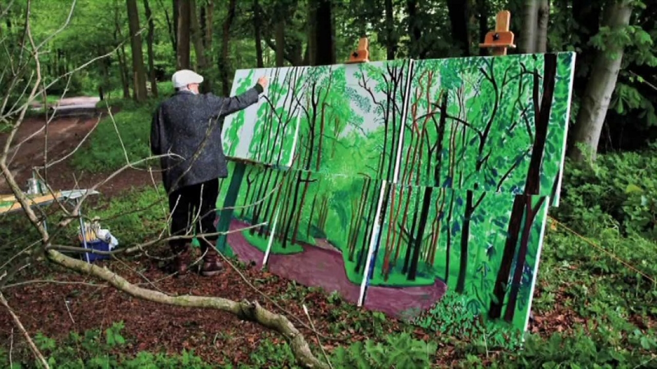 David Hockney heeft voor zijn tentoonstelling A Bigger Picture veel buiten gewerkt. In de verschillende seizoenen schilderde hij in de regio van Yorkshire het Engelse landschap. In zijn auto volgeladen met doeken en ezels ging hij samen met zijn assistent op pad. Als hij dacht op een geschikte locatie te zijn dan stopte hij de auto en stelde hij met zijn assistent op de bospaden zijn panelen op. Deze panelen werden later samengevoegd om zo grotere totaalwerken te vormen. Om de compositie van het totaalbeeld in de gaten te houden gebruikte Hockney fotoshop en een Ipad, ook heeft hij verschillende werken exclusief met zijn Ipad gemaakt. Hockney combineerde een ouderwetse aanpak (het schilderen van landschappen in de buitenlucht) met een originele manier van werken (het werk opdelen in panelen) en voegde daar het gebruik van digitale technieken aan toe.