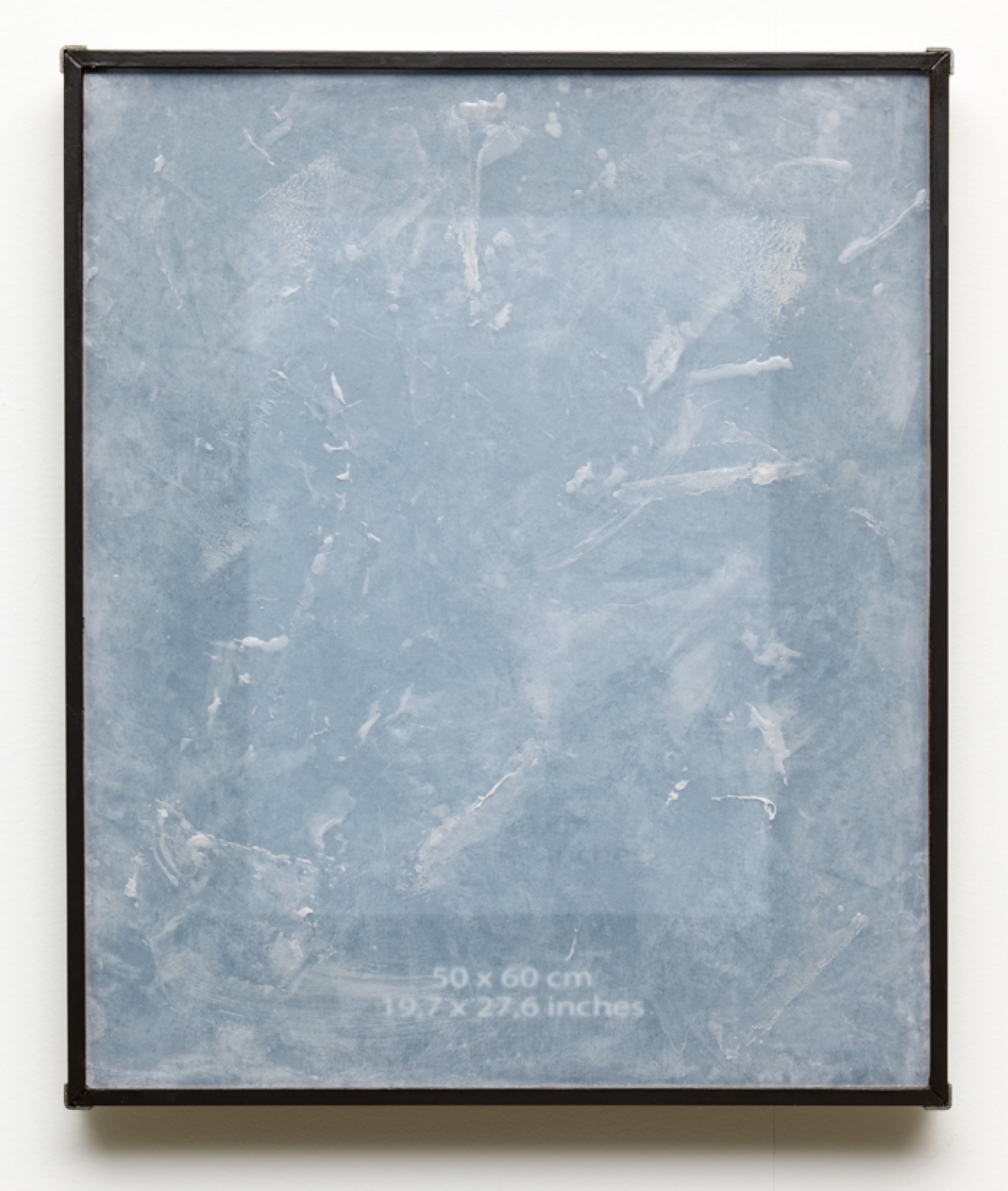 “Omdat het non-afbeeldingen zijn; ze zijn er alleen maar om ingewisseld te worden. Ze bestaan niet om zichzelf, maar als een voorbeeld van wat een afbeelding zou kunnen zijn. Op een aantal van mijn werken zie je enkel afmetingen, bijvoorbeeld 70 x 100 cm. Het object geeft hiermee een omschrijving van zichzelf, maar tegelijkertijd is het een standaardmaat voor afbeeldingen. Alle afbeeldingen in deze serie zijn tot nu toe voorbeeld afbeeldingen, het idee van een afbeelding. Door ze te bedekken met papier en te beschilderen met was en ze zo half te versluieren, of half te onthullen, benadruk ik dit. Ik geef geen volledige toegang, maar een suggestie naar wat het zou kunnen zijn in plaats van te tonen wat het is. Van de fotolijsten die ik vind neem ik de ingrediënten als uitgangspunt; afbeelding, glas, papier en de lijst, maar deze wissel ik om. Ik druk de afbeelding op hout en plaats het met was bewerkte papier op het glas, vóór de afbeelding.”