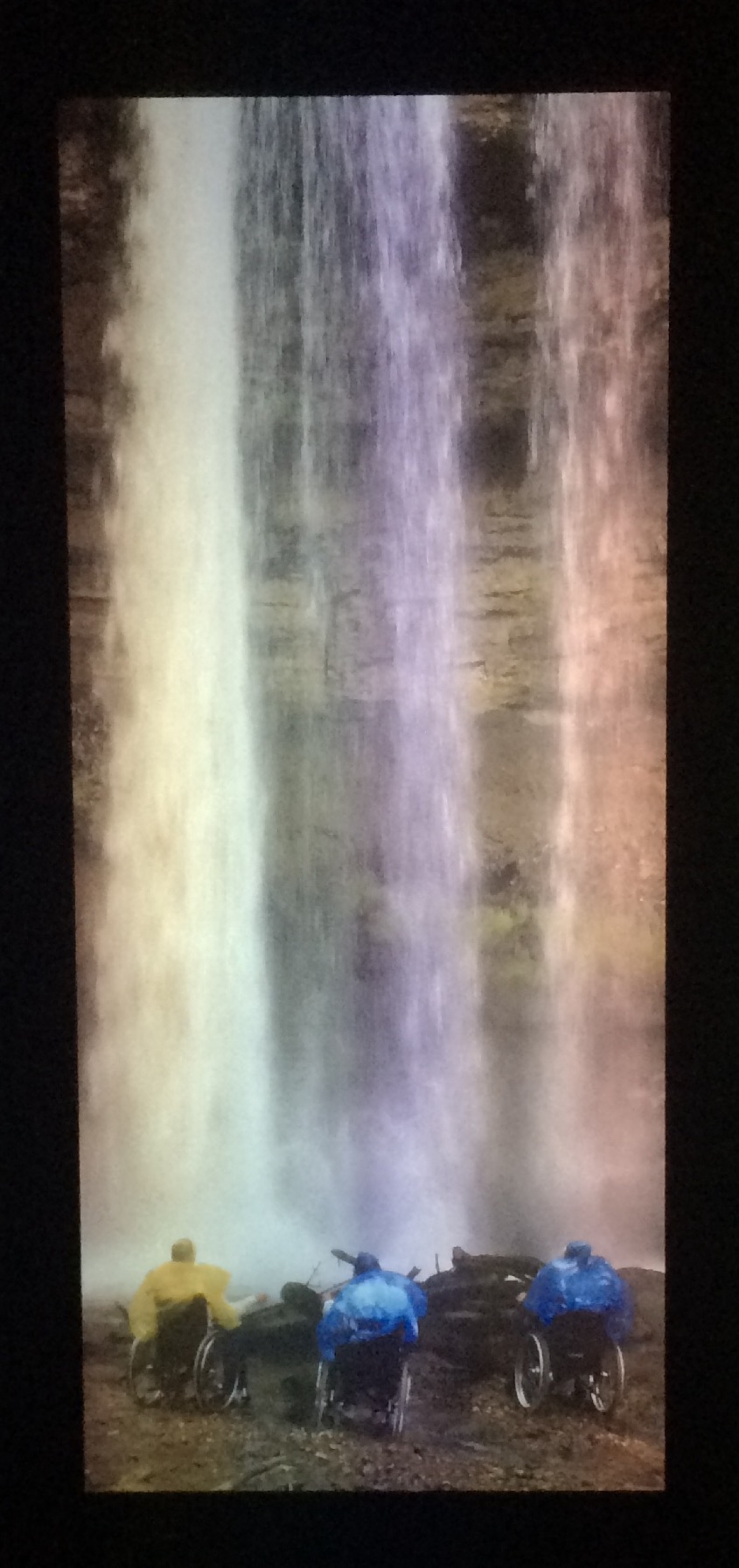 The Idealist, the Enlightened, the Martyrs, the Folklorists en the Devoted. Vijf uitlopende typen die al reizende, allen hun innerlijke zelf gevonden lijken te hebben. In een video-installatie krijgen zij hun podium. Zo is er in een donkere hoek in de ruime zaal op een groot beeldscherm, een karakter van de vijf toeristen op video te vinden. Drie mannen in rolstoelen staren vol overgave gedurende een gigantische stortbui naar een waterval. Ieder van hen is beschermd door een plastic poncho, die je voor 1,50 bij de op=op winkel zou kunnen kopen. Een bijzonder esthetisch beeld waar de treurigheid van afspat, maar anderzijds het doorzettingsvermogen voelbaar is: The Devoted. De toerist die vol begeerte de natuur trotseert.