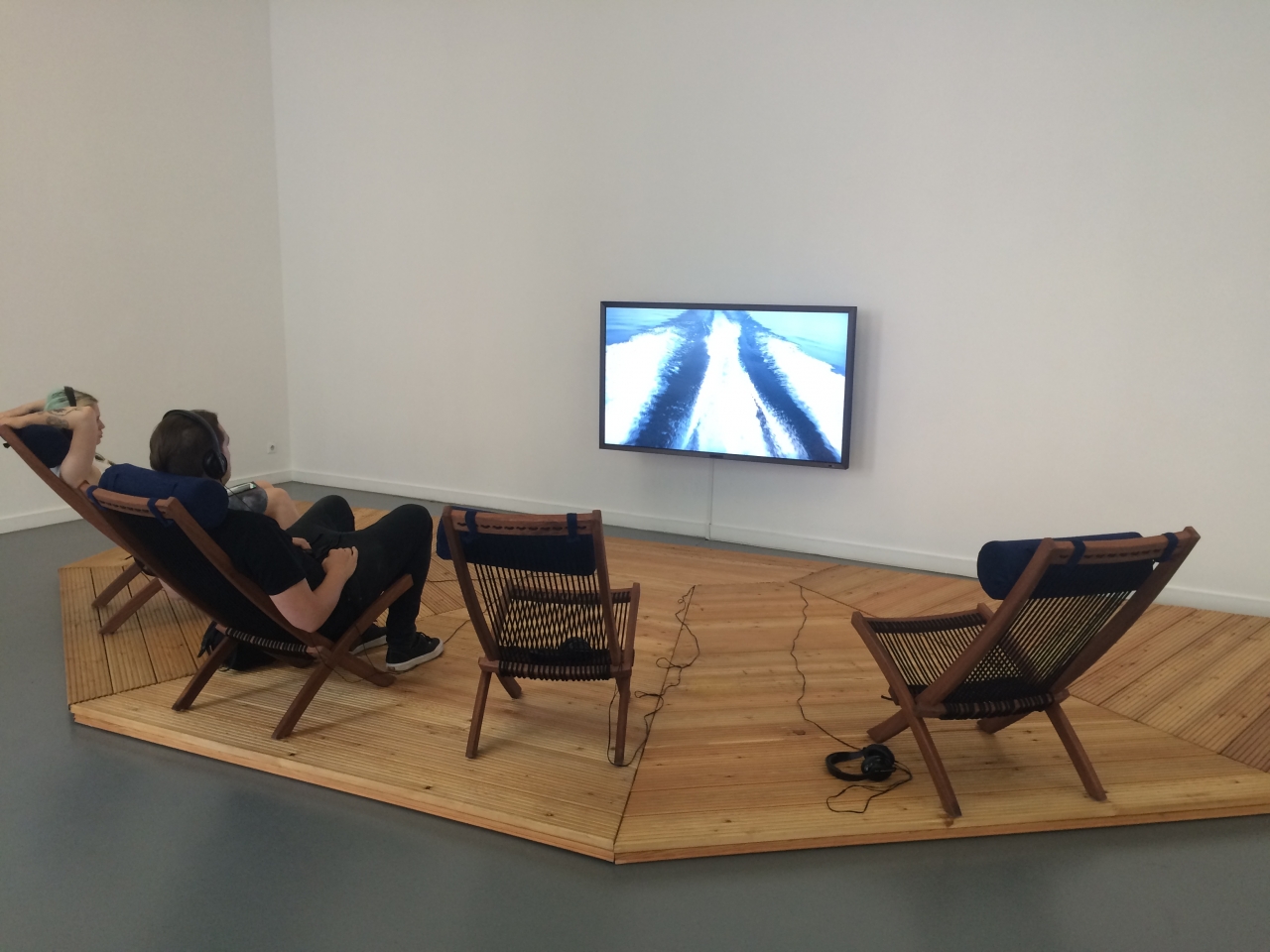 Een totaal andere vakantie beleeft the Enlightened, de verlichte, toerist. Op een luxe hardhouten strandstoeltje bovenop een houten vlonder mag de museumbezoeker plaats nemen. Met een kussentje in de nek voor het comfort, kijkt deze vervolgens naar twee gebruinde en tevens goed in-geoliede mannen op een speedboot. De twee kale levensgenieters varen met flinke vaart over een knalblauwe zee terwijl boven hen een heldere lucht hangt en het zonnetje schijnt. Hun bloesjes met opgerolde mouwen wapperen om hun verbrande torsos. Terwijl de een achter het roer staat, snoept de ander af en toe een cherry-tomaatje weg van een sculptuur in de vorm van een ananas, bedekt met diverse tomaatjes en kleine mozerella bolletjes.