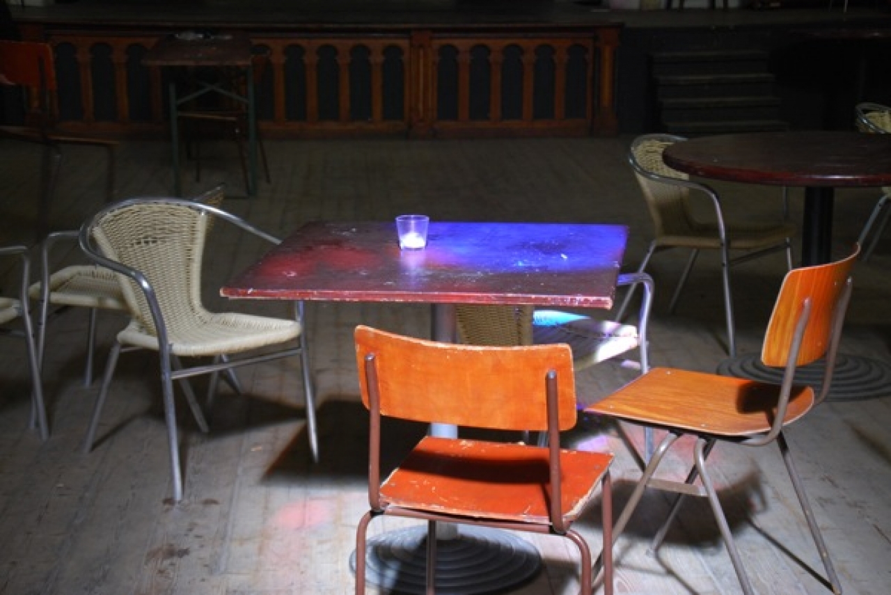 Binnen is een handjevol Ruigoorders bezig de sporen van de vorige avond uit te wissen. Het is Open Ateliers geweest, de dag ervoor afgesloten met een concert en aansluitend een – zo te zien goed geslaagd feest- in de kerk. Het licht dat door de glas-in-lood ramen naar binnen valt vormt regenbogen op de tafels en stoelen die voor de schoonmaak aan de kant worden geschoven. Frankie stelt me voor aan een jonge vrouw waar ik een poosje mee praat. Het gefilterde zonlicht glijdt over haar gezicht, de gekleurde plukken in haar haren dansen mee.