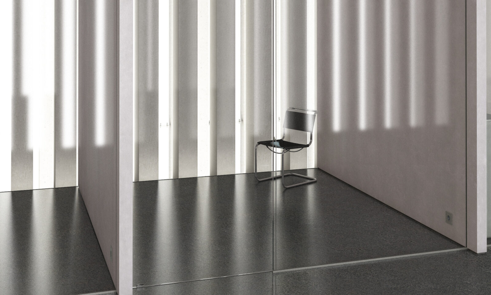 De video toont een volledig digitale, computer gegenereerde reconstructie van het nooit gerealiseerde gebouw. Alles is weergegeven in grijstonen. Door het ontbreken van kleur en mensen ontstaat een onwerkelijke, steriele sfeer. Het licht is zacht en weinig contrastrijk. Ik zie de camera langzaam door grote, lege ruimtes glijden, brede gangen, open hallen, hoge betonnen volumes. Door de vloeiende bewegingen voelt het alsof ik zelf door het gebouw zweef.