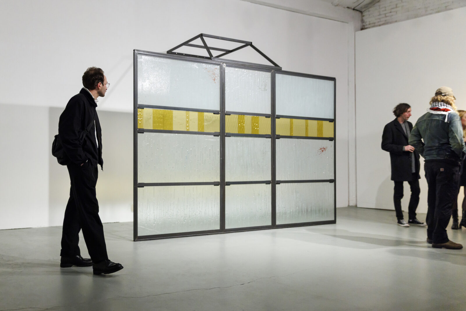 In The Wall zie ik iets vergelijkbaars gebeuren, maar dan aan de kant van de staat. Het voertuig dat normaal ondoordringbaar is, wordt door het glas ineens doorzichtig. De façade van macht blijkt een kwetsbare constructie zodra je er letterlijk doorheen kunt kijken. Wat bedoeld is als barrière, wordt een oppervlak dat kan breken.