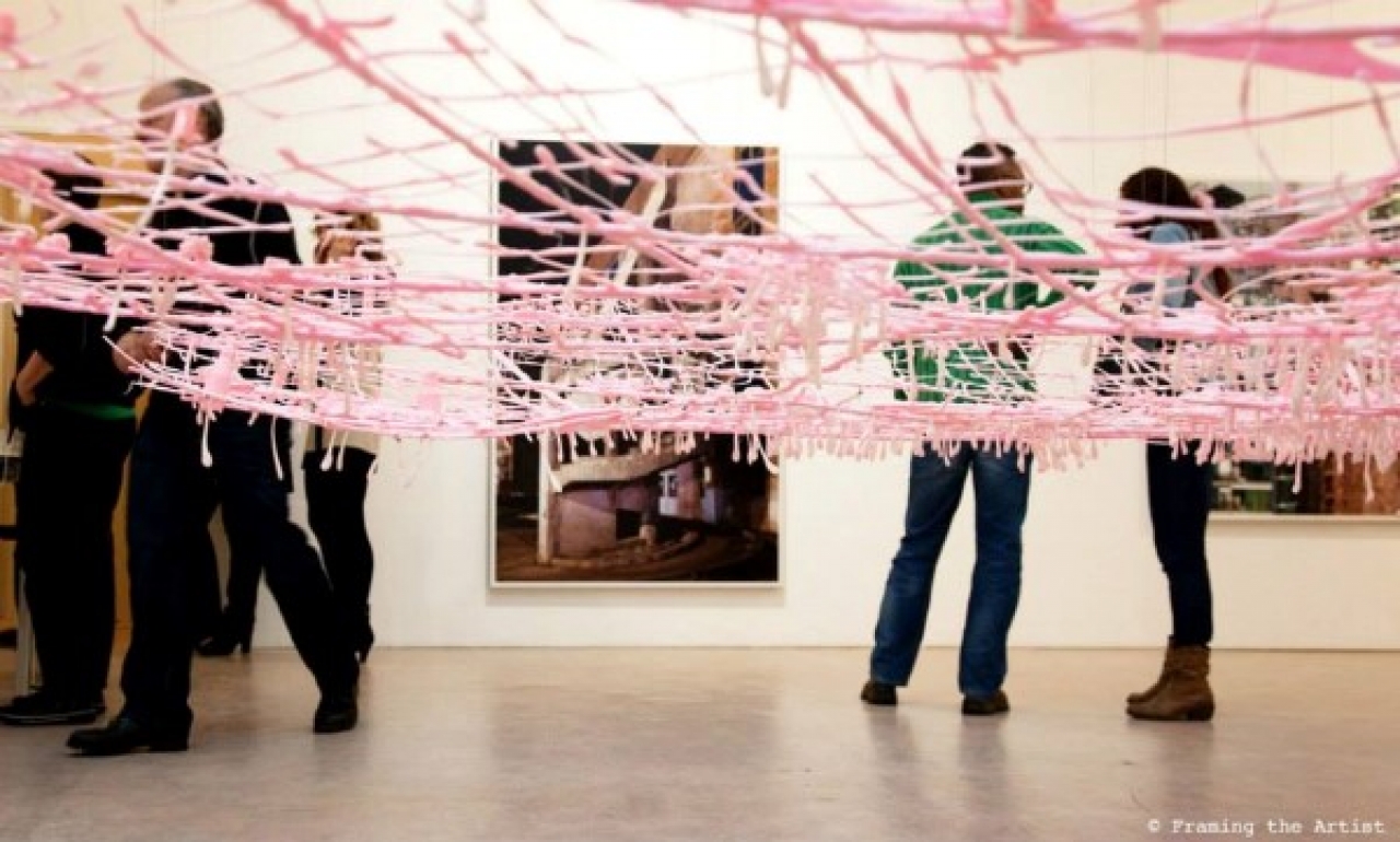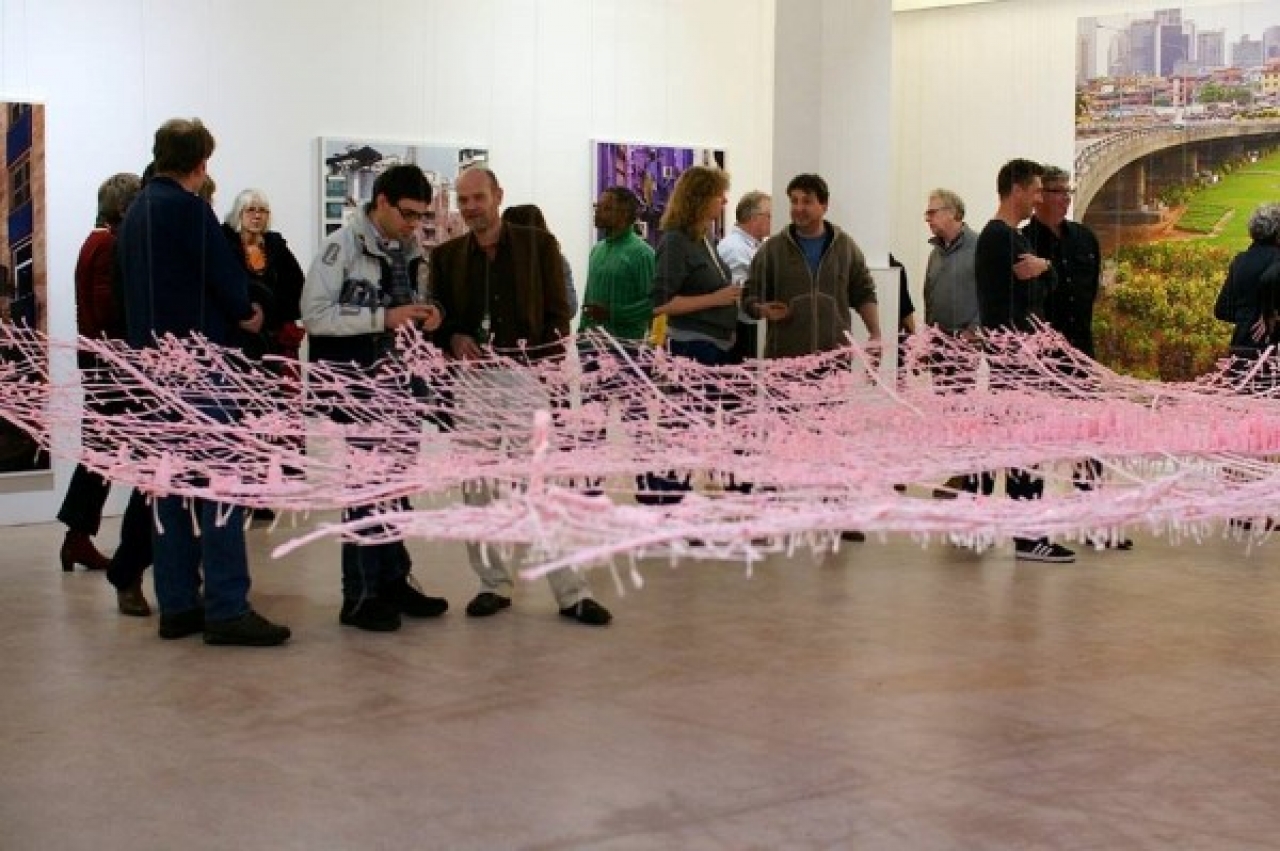 Knalroze plastic weefsels van beeldhouwer Stefan Gross plakken als suikerspinnen aan je netvlies. Op het eerste gezicht lijken ze te contrasteren met de monumentale foto’s van stedelijke structuren van de hand van Hans Wilschut. Dat er ook overeenkomsten zijn, dat valt te ontdekken op hun duotentoonstelling in 38CC.