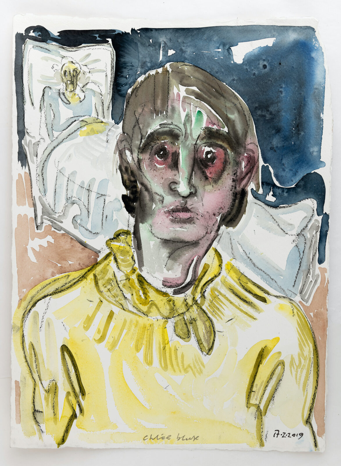 ‘I use my mother as a prop all the time as well.’ Ook haar kinderen zijn decorstukken. Zo geeft ze haar gevoelens ruim baan in overvolle tekeningen met felle kleuren en verwrongen personen. ‘I use them to tell a narrative. There’s nothing extra, nothing hidden behind what you see. I just put the people around me together as if it were a drama.’