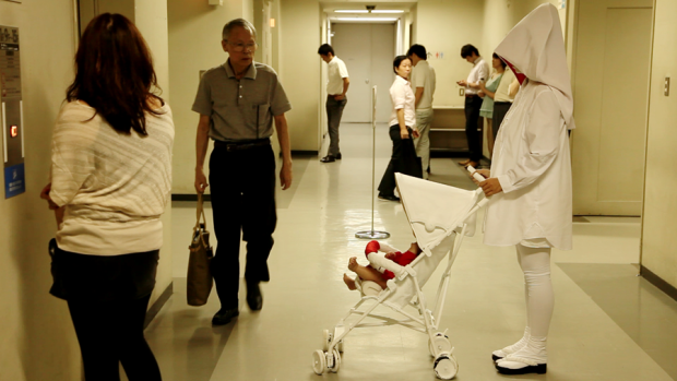 Een mysterieuze, witte gedaante beweegt zich met een kinderwagen door de publieke ruimtes van Fukuoka. De grote capuchon en het uniforme wit van de persoon die de kinderwagen duwt voorziet het lichaam van vreemde proporties. Met de performance White Mother trekt kunstenaar Anida Yoeu Ali zodanig de aandacht van de voorbijgangers dat zij haar met vragende blikken nastaren. Maar opvallender zijn de mensen die haar frappante voorkomen geen aandacht schenken door geforceerd hun blik af te wenden. Bijna alsof de merkwaardige verschijning er niet is zolang ze haar negeren.