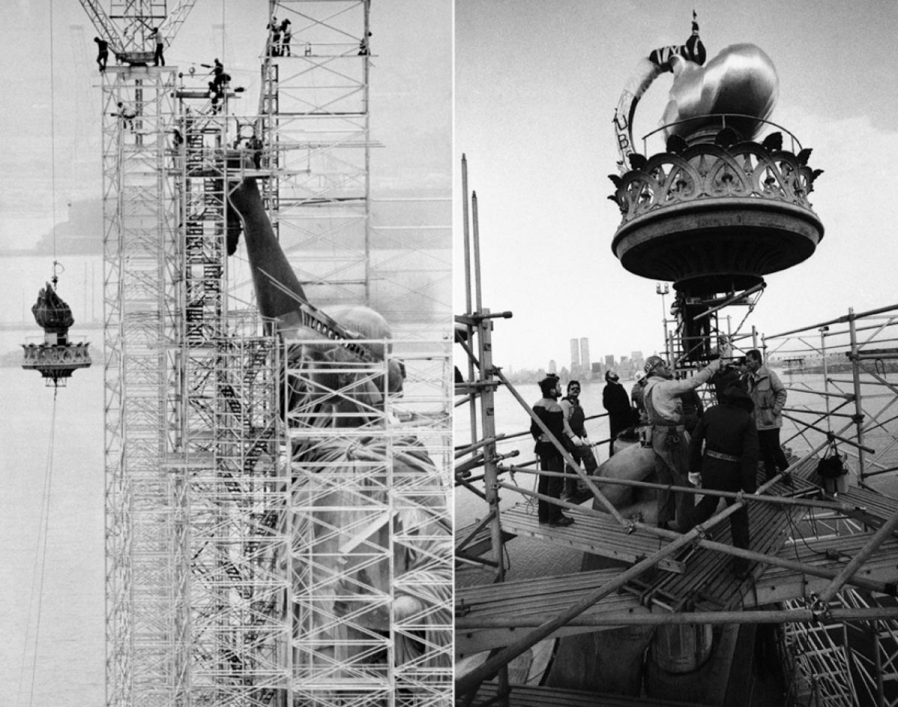 Maar toch, het blauwe standbeeld dat prijkt voor de kust van New York verkondigt in essentie nog steeds haar oorspronkelijke boodschap. De boodschap die kan worden gelezen in de volledige titel van het werk. La liberté eclairant le monde, oftewel: De vrijheid die de wereld verlicht. Het beeld is een geschenk van Frankrijk aan Amerika om hun vriendschap te bekronen en het metershoge kunstwerk is dan ook ontworpen door Gustave Eiffel naar aanleiding van een oorspronkelijk standbeeld van Frédéric Bartholdi. Het schijnt dat Bartholdi ’s moeder model heeft gestaan voor het oorspronkelijke beeld. In 1884 werd de staalconstructie met haar koperplaten door Eiffel voltooid in Frankrijk en op het schip gezet richting New York: 350 stukken staal, verdeeld over 214 kratten. Vier maanden duurde het om het immense standbeeld weer op te bouwen in Amerika en op 28 oktober in 1886 werd ze ingehuldigd. De kroon van het beeld bestaat uit zeven punten die de zeven continenten en zeeën moet symboliseren.