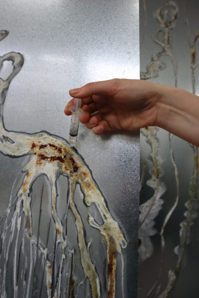 Dit keer hoor je het gesprek met Mirre Yayla Séur, uit september 2023. Van die uitzending is bij Luuk een specifiek beeld blijven hangen: dat van Mirre die tijdens een performance rondsjouwt met een groot glazen object, waaruit water met daarin door haar gekweekte ijzerbacteriën over de randen klotst. Mirre onderzocht hoe je zorg kunt dragen voor iets dat als vies en glibberig wordt gezien, en welke bezitsrelatie er ontstaat als je iets liefhebt: heb je vooral iets positiefs te geven, of claim je het voor jezelf?