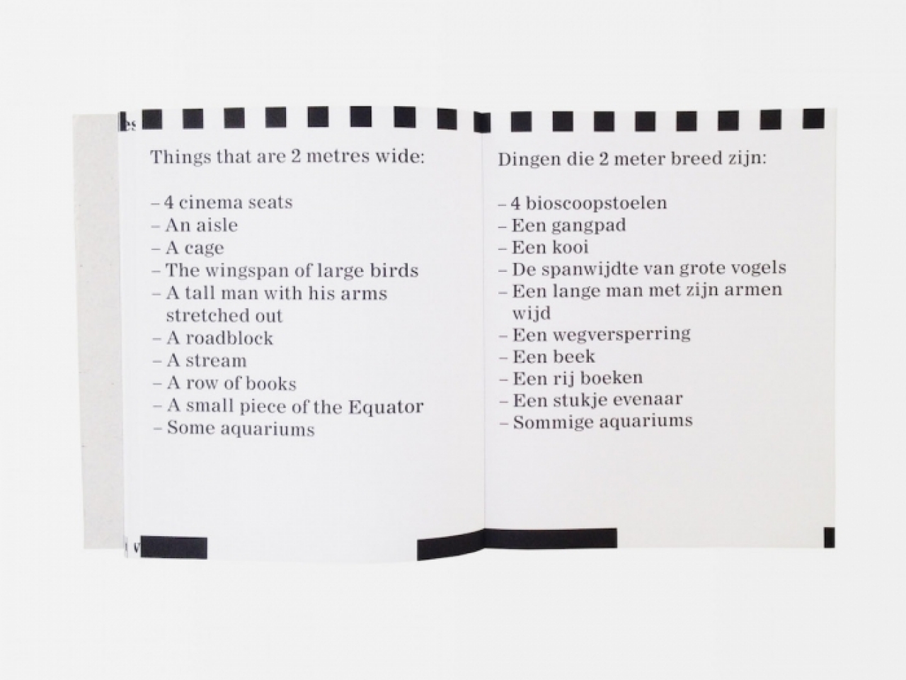 Ook komt Mascini op het idee om de lengte van de walvis in het woordenboek op te meten: door alle woorden (inclusief hun uitleg) in de dikke van Dale met een meetlint te volgen, kom je op de lente van 33,85 meter tenslotte bij het woord ‘aanbidbaar’ uit. De blauwe vinvis is dus ‘aanbidbaar’ lang. En volgens deze methode worden nog meer getallen door woorden vervangen: ook de hoogte van beroemde bergen wordt in het woordenboek opgemeten. Het is een monnikenwerk waarbij Mascini vanuit stilstand, zittend op een stoel, de Mont Blanc beklimt.