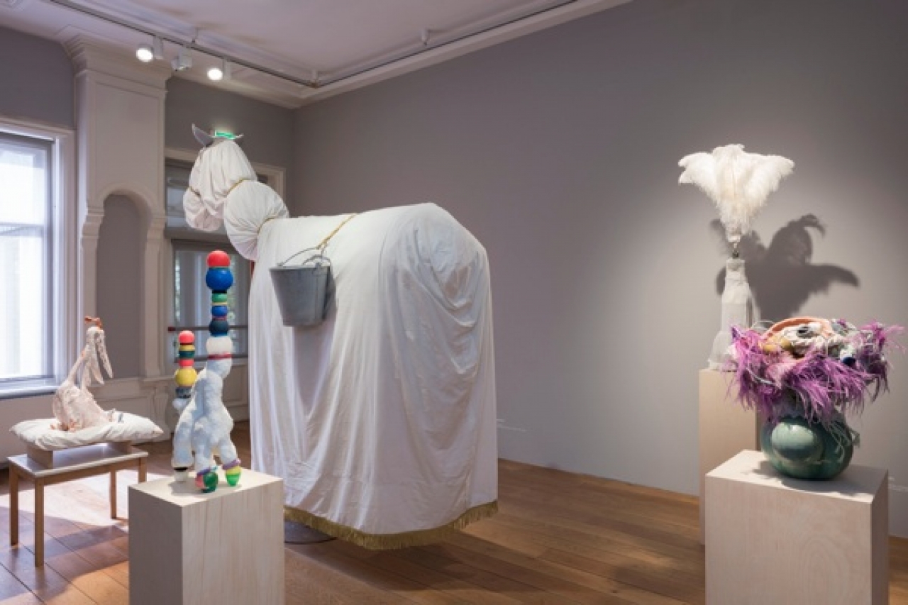 De parallel met het heden dringt zich op: ook op dit moment staat de wereld op vele plekken in brand, wreedheden als in de film van Tarkovsky vinden dagelijks plaats. Nederland is nog steeds een vreedzame plek, maar als ik om me heen kijk lijkt het of de mens niet in staat is om het geluk vast te houden, het goede lijkt hem voortdurend weer uit handen te glippen, ondanks ieders verlangen naar geluk, acceptatie en liefde. De vraag ‘Hoe kunnen we leven?’ staat centraal in mijn werk. De urgentie van mijn werk ligt in het tegenwicht dat ik wil bieden aan de mens in al z’n onmacht en onhandigheid. Dit menselijk tekort staat centraal in mijn werk: een onnozel mannetje zonder armen en benen dat als een hulpeloze tuimelaar met een kokosnotensnoet ons bedremmeld aankijkt: ja wat nu? Wraakveulen met maar één stijgbeugel en dikke zachte oogkleppen op kan hooguit een slag in de lucht slaan. De wraak lost op. Het is luimig en aandoenlijk. Door humor te gebruiken probeer ik ieder met zachtheid naar zijn eigen falen en tekorten te laten kijken.