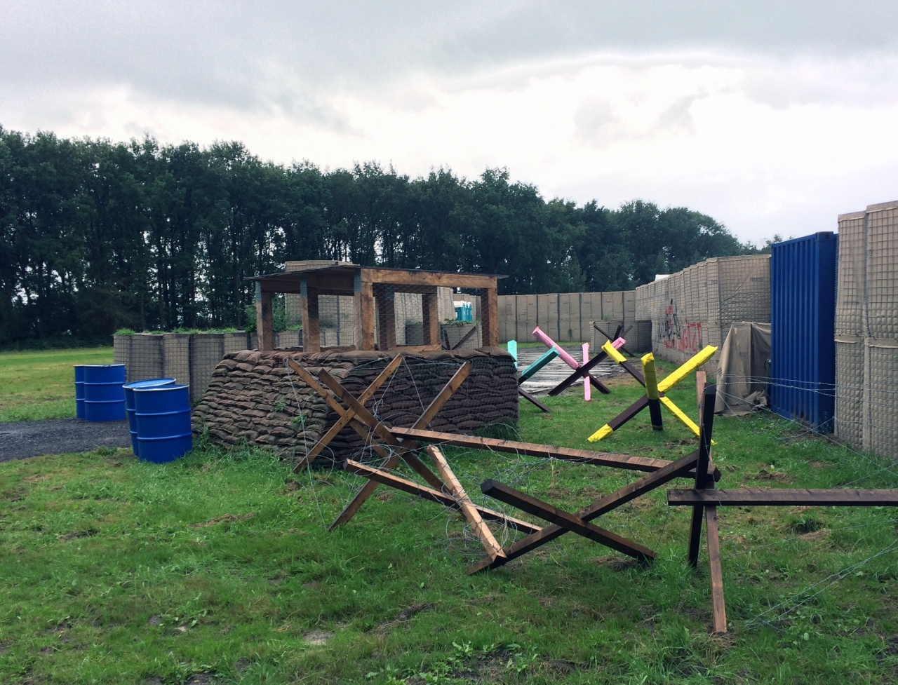 De eerste twee weken van Basiskamp Entre Nous zijn voorbij. Er is nog verbazend weinig aan zichtbaars voortgekomen uit onze aanwezigheid in de militaire kunstkolonie. Je zou verwachten dat vijftien kunstenaars in twee weken al van alles op touw zouden hebben gezet, maar het lijkt op het oog of we nog maar net zijn begonnen. Dat heeft verschillende redenen. In een notedop: regen, storm, onduidelijkheid en de verwijdering van kennelijk ongewenste kunstwerken in wording, waaronder een nog onvoltooide installatie van mij. Dat laatste zonder overleg.