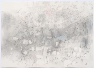 In de tekeningen en aquarellen van Dineke Blom blijft het vaak onbepaald wat er precies is afgebeeld. De vage contouren van een landschap, daaroverheen vegen, her en der een lijn, en rudimentaire geometrische figuren vormen samen een dynamisch geheel. De titels van de werken geven een aanwijzing, en zetten je op het spoor van Hollandse schilders uit de zeventiende eeuw.