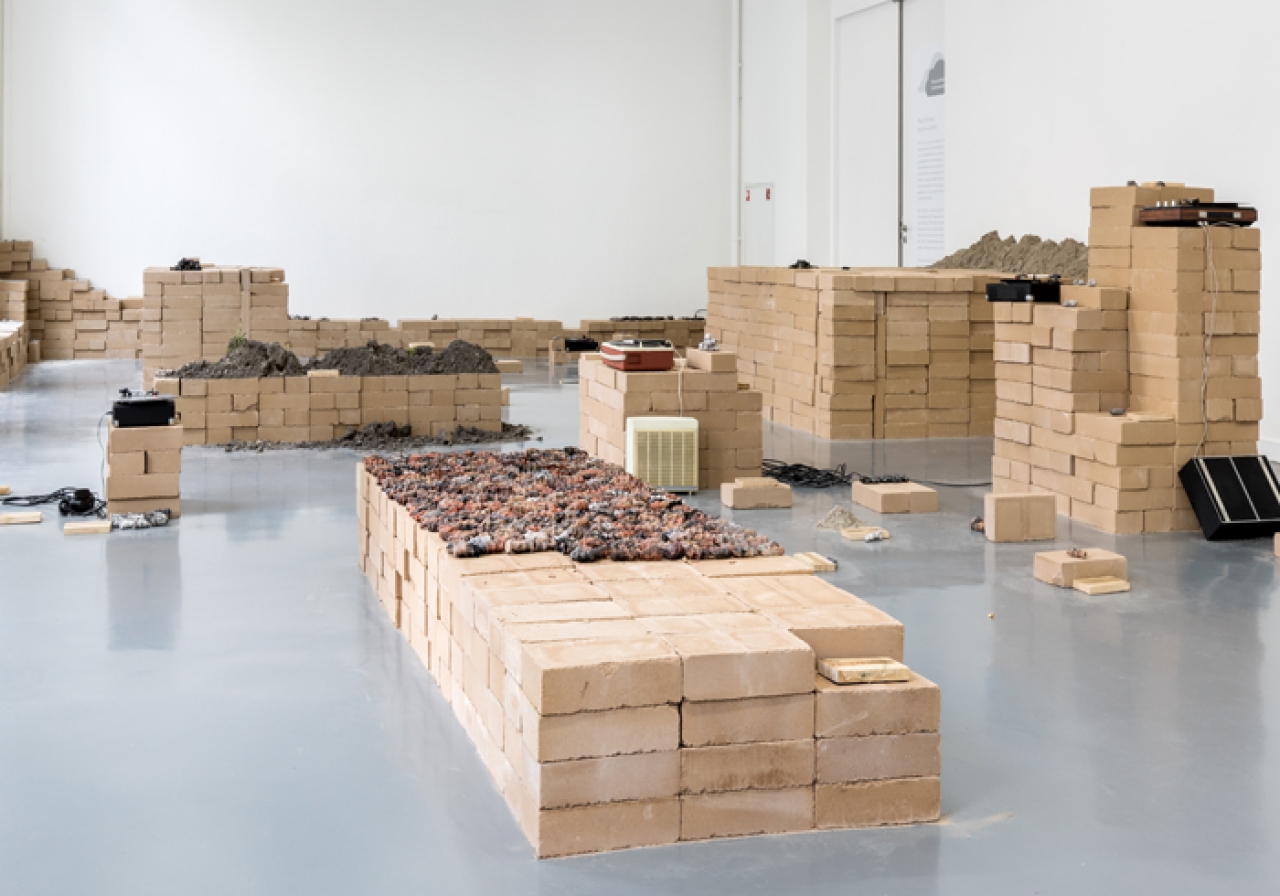 Twee jaar geleden had ze een tentoonstelling in het Palais de Tokyo in Parijs: Untitled (of Occult Instability) [Feelings ]. Daarin tekende die verandering zich al af. Uitgangspunt was een videoclip van Nina Simone, die tegen een oranje achtergrond Feelings zingt. De hele ruimte had de kleur van die achtergrond. De toegang tot de ruimte was voor een groot deel geblokkeerd door een enorme berg kapotte, bruinrode bakstenen. Ik had het gevoel een enigszins beklemmende grot te betreden. Hier en daar werden waterdruppels opgevangen in emmertjes. Bopape wilde laten zien, laten voelen, hoe heftig de koloniale geschiedenis van haar land doordringt in het gevoelsleven van haar generatie. Hoe die moet vechten om geestelijk in balans te blijven. Dat werd me vooral duidelijk door de videobeelden die ze in de Jardin de Vincennes had gemaakt. Daar werd in 1931 een koloniale tentoonstelling gepresenteerd waarvoor oorspronkelijke bewoners uit de koloniën werden gehaald om zich in zelfgemaakte hutjes en huisjes aan het blanke publiek te tonen. Een human zoo, volgens Bopape.