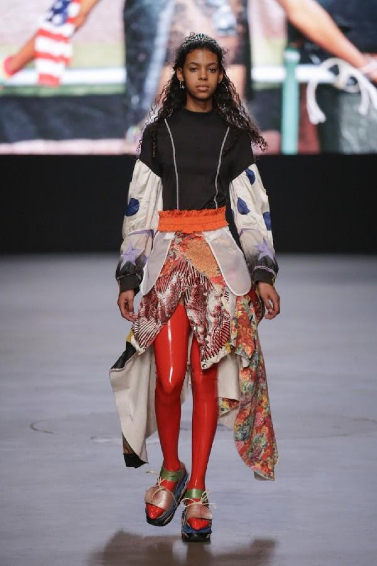 This is how I came to see Duran on Facebook, sitting in the front row, wearing ‘my’ sandals, they walked by on the catwalk on long, slim, bright red glossy legs and with an extra piece of string around them as if the superglue might give way, on a screen-print on which the shoes were recorded by the sun itself into a radiant universe.