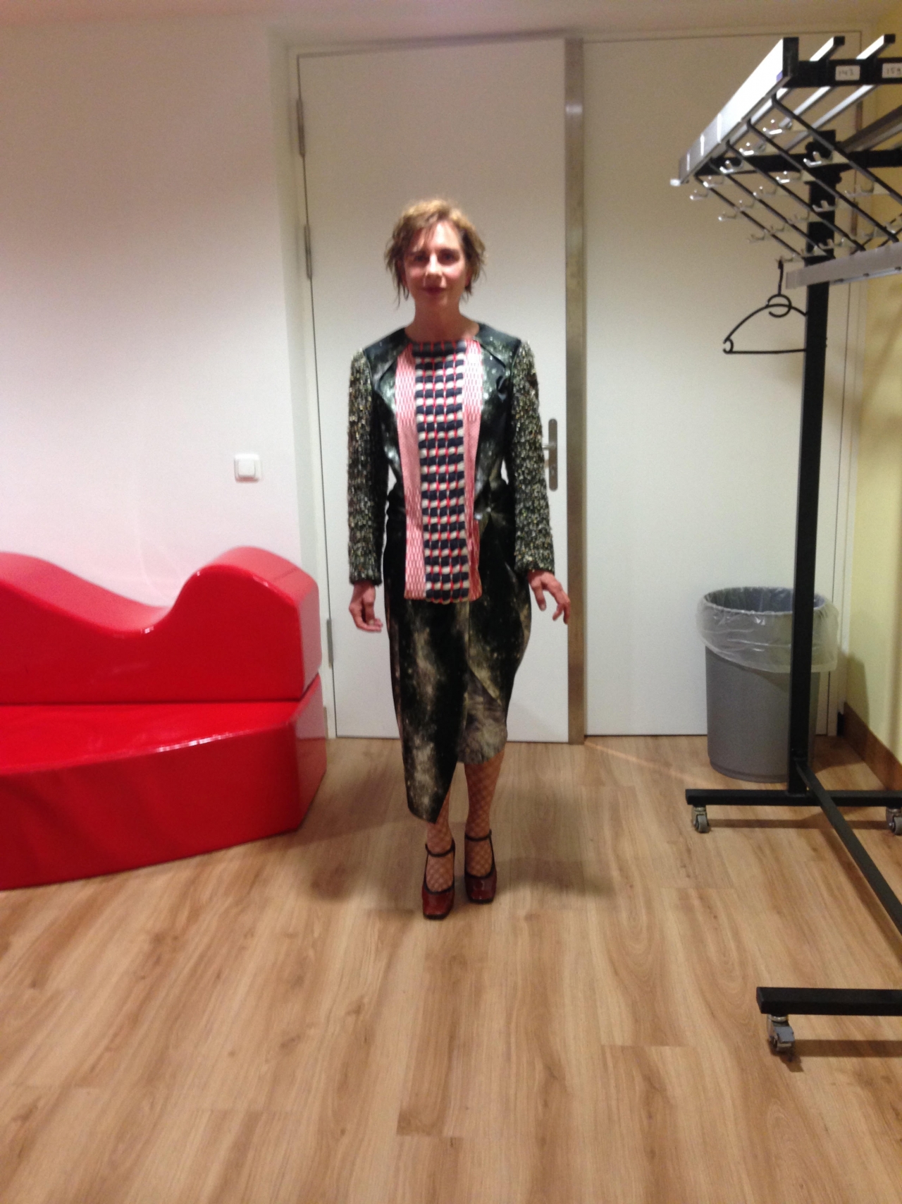 My Jan Jansen sandals fall through the loft hatch onto the floor. A thick blue sole with rounded ridges, a pink metallic wrapover strap with Velcro and a green metallic strap over the foot, close to the leg. Yes, I like sturdy shoes and these sandals made me about 5 cm taller and that’s why I wore them. For a while. Afterwards, they languished in a dark loft. Forgotten. Now, in the clear light of day, they look better than ever, with that extra dust and those bygone times. I give them to fashion designer Duran Lantink who loves to recycle fashion items.