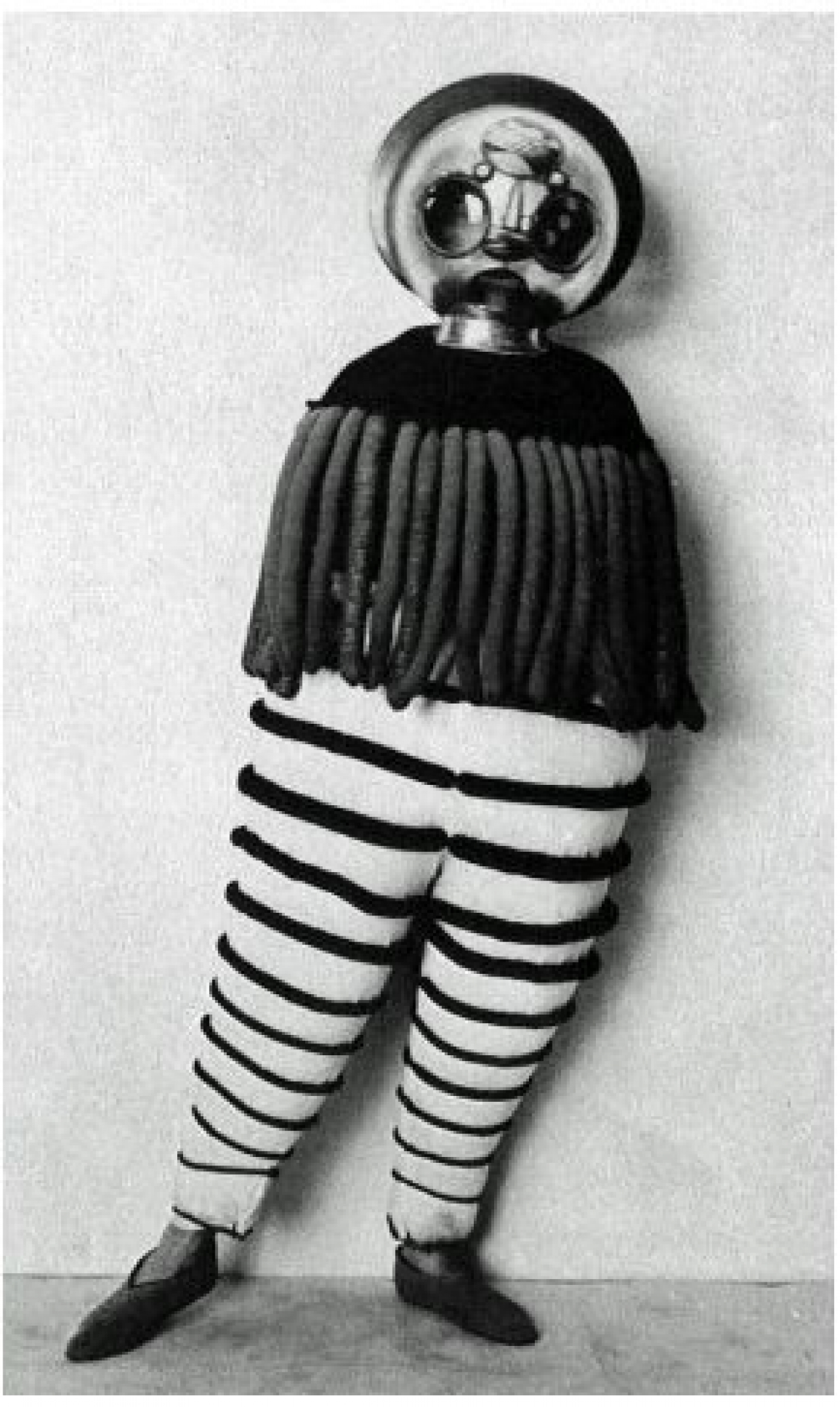Schlemmer valt daar buiten, bezeten door vorm wil hij een totale theatervernieuwing baseren op het kostuum. Hij gebruikt de mens daarbij als uitgangspunt, de maat van alle dingen. Schlemmer vereenvoudigt de vorm van de mens sterk en brengt het terug tot een combinatie van drie ultieme basisvormen: vierkant, driehoek en cirkel. Zijn kostuums baseert hij op deze drie vormen en vanuit hier wil hij de interactie tussen dat menselijk lichaam en de omringende kubieke ruimte van het podium observeren, meten, onderzoeken, uittesten en uitdiepen. De verschillende houdingen van de mens; zitten, staan, liggen, geven een oneindig groot aantal mogelijkheden van interactie met de ruimte. Daarna brengt Schlemmer zijn onderzoek tot een tweede niveau, waar de mens in de ruimte gaat bewegen, wat de mogelijkheden tot interactie nog ontelbare malen verhoogt. Het derde niveau in het Triadische Ballet is die van het symbolisme. Schlemmer wil met zijn dans de mystiek bereiken door middel van symbolen. Zoals gekruiste armen die het oneindigheidsteken moeten voorstellen.