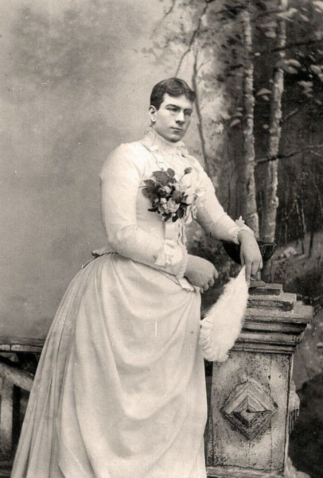 Vannacht vond ik deze prachtige fotoserie van mannen aan het eind van de 19e en het begin van de 20ste eeuw gekleed als vrouw. De foto’s tonen moed omdat deze mannen poseren in een tijd dat de maatschappij neerkijkt op deze manier van zelf expressie. Elegant en trots staan ze voor de camera. Een enkeling kijkt schuw en lijkt nog niet comfortabel te zijn met de positie waarin hij zich presenteert. Ze zijn onwetend over het feit dat ze voorlopers zijn van de huidige Dragqueens. Het gaat het verder dan een verkleedpartij; de foto’s zijn een eerste uiting van transseksualiteit. Een goed voorbeeld hiervan is het portret Lili Elbe.