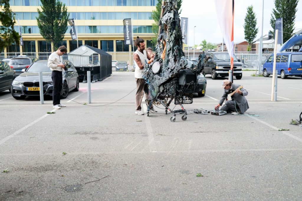 Paul Braspenning, Sid Dankers, Mike Megens en Floor Snels zijn bezig. Ze lopen continue rond in donkerblauwe pantalons, beige truien en gemakkelijke werkschoenen. Het viertal verzorgt een livestream waarbij aan de lopende band informatie en non-informatie wordt verzameld. Hierbij ligt de uitnodiging bij andere deelnemers, bezoekers en organisatoren om op enige wijze een bijdrage te leveren aan de stream. De beurs als één groot toneelstuk; wie speelt welke rol? Improvisatie wordt ingezet als middel om op elk moment iets spontaans te laten ontstaan en uit te zenden.