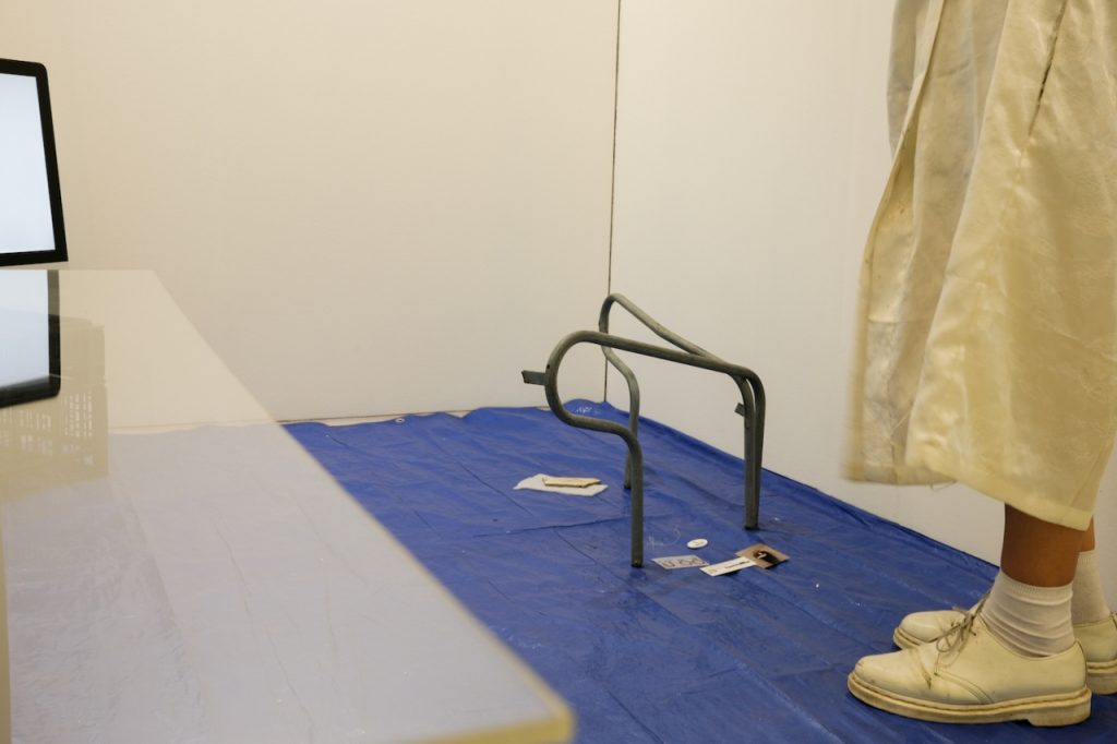 Het werk van Floor Snels in dezelfde stand is een aanleiding om in gesprek te gaan. Snels onderzoekt de totstandkoming van sociale structuren. Sociale structuren ontstaan en bestaan voornamelijk uit hiërarchische relaties. Ons gedrag in een bepaalde context wordt indirect gestuurd door ongeschreven regels. Een kunstbeurs is een uitgelezen plek deze ‘pressure to perform’ aan te kaarten. Wat als een werk aan regels en overeenkomsten moet voldoen waardoor het oorspronkelijke plan niet van de grond kan komen? Het overkwam Snels in aanloop naar This Art Fair. Een aantal momenten in de voorbereiding zorgden ervoor dat de behoefte om te presenteren op de beurs verdween. Ze stapte af van haar initiële ideeën, tekende de ervaring van het proces op en speelt deze tekst af op een scherm naast de livestream Bits and Pieces, waarbij Snels een omgangsvorm uitprobeert in relatie tot de druk om te pres(en)teren.