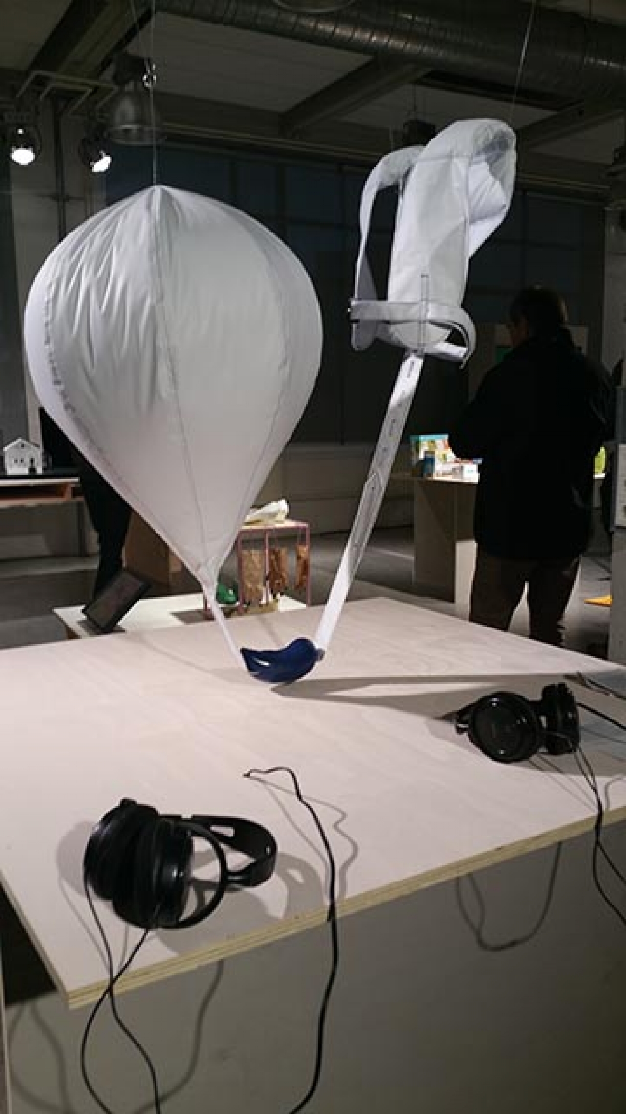 Geknuffeld worden door een pak in plaats van door een levend persoon doet ergens wringen. Uiteindelijk verlangen we naar intimiteit van een geliefde. Het zoeken naar deze partner kan resulteren in een wanhopige speurtocht en mensen swipen radeloos verder op Tinder. Mechanische Balts is een aangename, alternatieve plek waar mensen speels bij elkaar kunnen komen. Joost Gehem en Tiddo Bakker laten zich inspireren op de zogenaamde lek, een plek waar dieren samenkomen voor hun paringsdans. In de installatie maken twee personen tegenover elkaar, ronddraaiende bewegingen met de heupen. Alleen als deze synchroon aan elkaar worden uitgevoerd, bewegen de houten ‘vleugels’ en springen de lampen een voor een aan. De interactieve verrichting laat personen naar elkaars bewegingen kijken, wat bij een eerste ontmoeting een onbekende intimiteit teweeg kan brengen. Tijdens mijn bezoek aan MU heb ik, met dank aan mijn geweldige paringspartner tegenover me, de vleugels en lampjes precies goed weten aan te drijven.