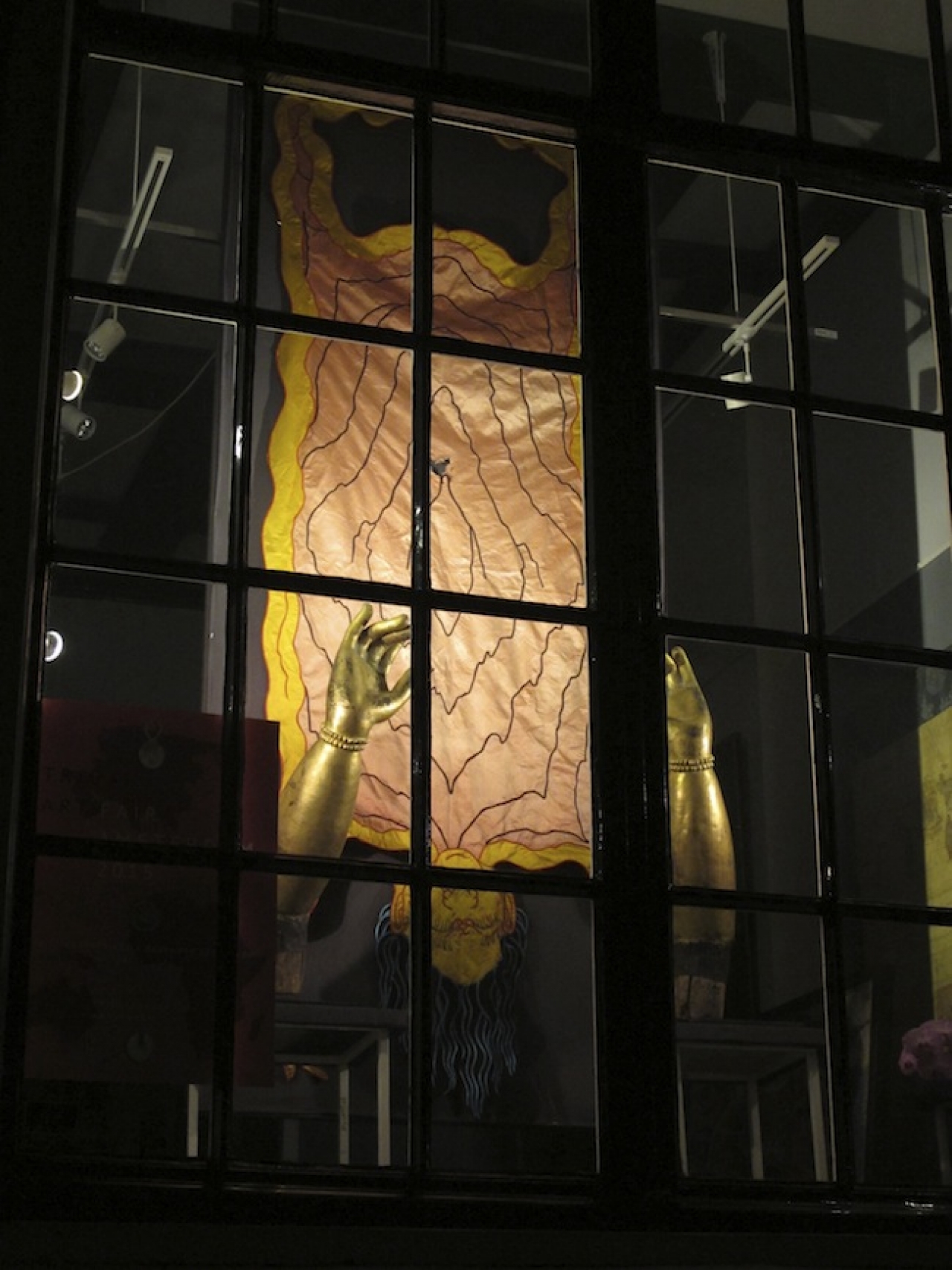 Desondanks huiver ik even van de menselijke botten, schedels en lachende doodskopjes in galerie Astamangala. In de etalage aan de Kiezersgracht hangt een vreemde roze lap stof die lijkt op een mens die met zijn hoofd naar beneden bungelt met een gat in het midden van zijn buik. Om meer te weten te komen over deze onbegrijpelijke voorstelling bel ik aan. Een vriendelijk, goedlachse man laat me binnen, Sjoerd de Vries, Tibetoloog, reiziger en gespecialiseerd in kunst uit het Himalaya gebied.