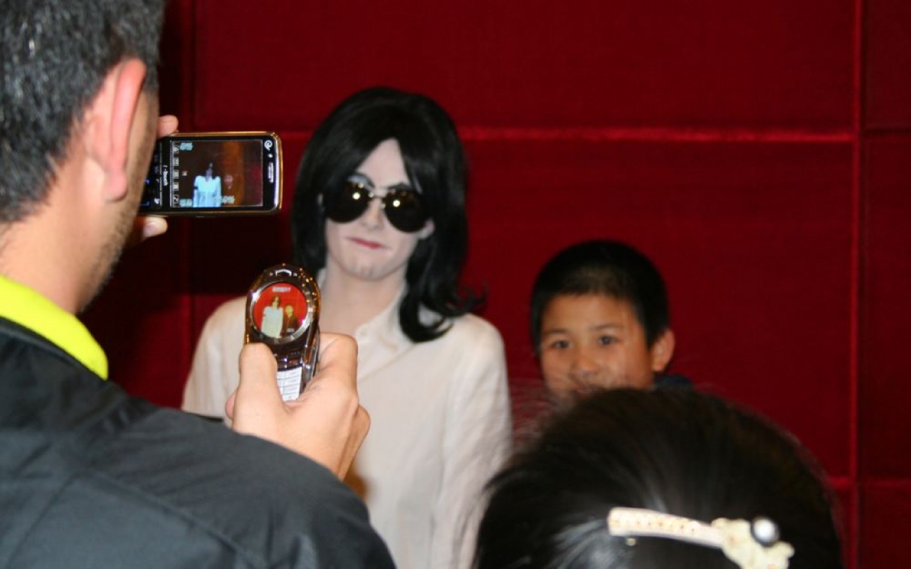 ‘Je anders voordoen dan je bent’, dat is een terugkerend thema. Popsterren vind ik om die reden fascinerend. Tijdens een performance in China verkleedde ik me als Michael Jackson. Ik vroeg van tevoren aan een meisje om naar me toe te komen voor een foto zodra ik het podium betrad in het betreffende restaurant. Dit was het startsein en zo volgde er een hele rits aan mensen. Ik gaf ze niets: geen glimlach, geen hand. Ik was een omhulsel dat van hand tot hand ging, een stijve pop met het uiterlijk van Michael Jackson. En toch kreeg ik applaus. Vreemd is dat, hoe we popsterren op een voetstuk plaatsen. Het adoreren, vereren en de hoge verwachting. Met mijn rol als Michael Jackson heb ik geen van die verwachtingen waargemaakt.