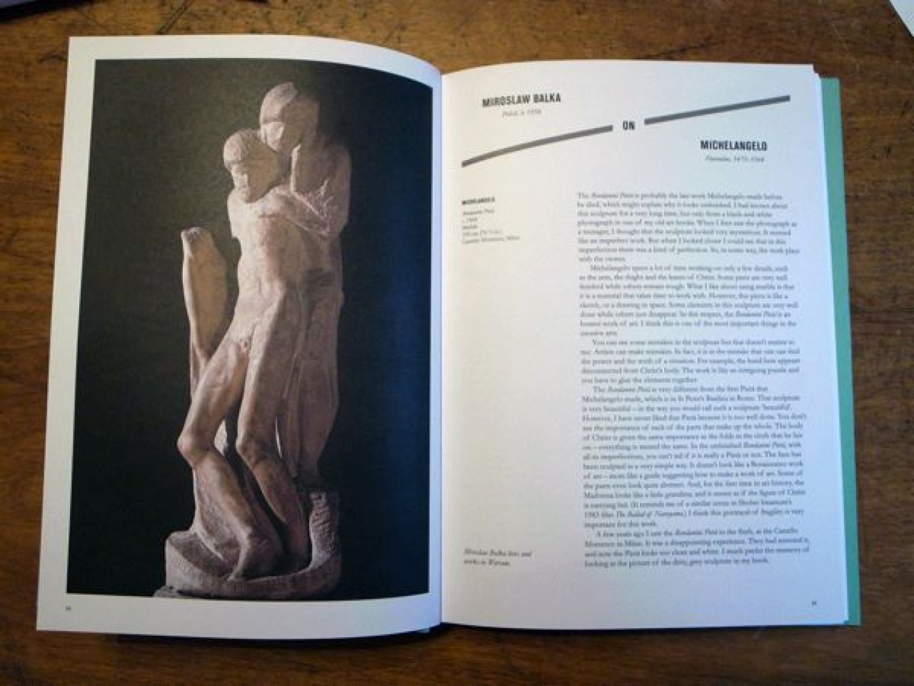 Het cadeau waar je natuurlijk het meeste eer mee opstrijkt is een boek over de krokodil in die ene kerk in Mantua dat hij nog niet heeft, maar dat is niet altijd haalbaar. Maar een boek over de specifieke voorkeuren van andere kunstenaars is nu net verschenen. ‘Behind the closed door of the contemporary artist’s studio is a hidden world of images’, zo begint de inleiding van het boek ‘In my view, personal reflections on art by today’s leading artists’. Iedere kunstenaar doet research naar ‘zijn onderwerp’ en verzamelt daar beelden en boeken over. Vorig jaar bezocht ik de studio van Natasja Kensmil en daar kolkte een rivier van afbeeldingen dwars door haar atelier. Uit de krant geknipte foto’s van koningen en keizers lieten zien hoe macht verbeeld wordt, hoe gezagdragers hun macht tonen. Vrijwel iedere kunstenaar verzamelt specifieke afbeeldingen en kent grote voorbeelden. De held van een kunstenaar kan zowel een artist’s artist zijn, een kunstenaar die niet heel bekend is maar onder kunstenaars zeer geliefd, of een totaal onbekende uit de kunstgeschiedenis gevallen kunstenaar, een outsiderkunstenaar of de Mona Lisa van Da Vinci of David van Michelangelo.