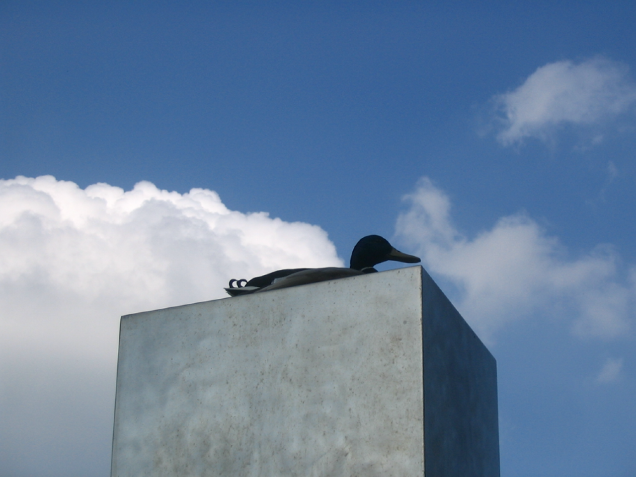 Neem nu de dode meeuw die zo stil op een elektriciteitskast ligt. Danger, Keep Away staat in afgebladderde letters te lezen, maar de woorden manen eerder tot eerbied dan tot angst. Want zo vredig zagen we de meeuw niet eerder. Zijn gevederde kopje is gracieus geknikt, de kraalogen voor altijd gesloten. Klaar voor de vlucht naar de volgende wereld houdt hij zijn vleugels stram langs het lijf. Al vroeg in zijn jeugd viel Frank Koolen van zijn geloof af. De pastoor die hem moest voorbereiden op de heilige communie verzekerde hem dat dieren geen ziel hadden. Hij kwam vervolgens zelf tot de conclusie dat er voor hen geen plaats was in het hiernamaals. Een hemel zonder dieren was niet voor te stellen voor de jongen. Zo bezien is de foto een blijk van herkenning tussen de kunstenaar en een andere zachtmoedige dierenvriend die de meeuw een plekje in de dierenhemel gunt. Want meeuwen sterven doorgaans niet op elektriciteitskastjes. Iemand heeft het dier daar in de luwte voor voetgangers en verkeer neergelegd. Het kastje is een sokkel geworden waarop de levenloze meeuw zijn laatste rustplaats heeft gevonden.