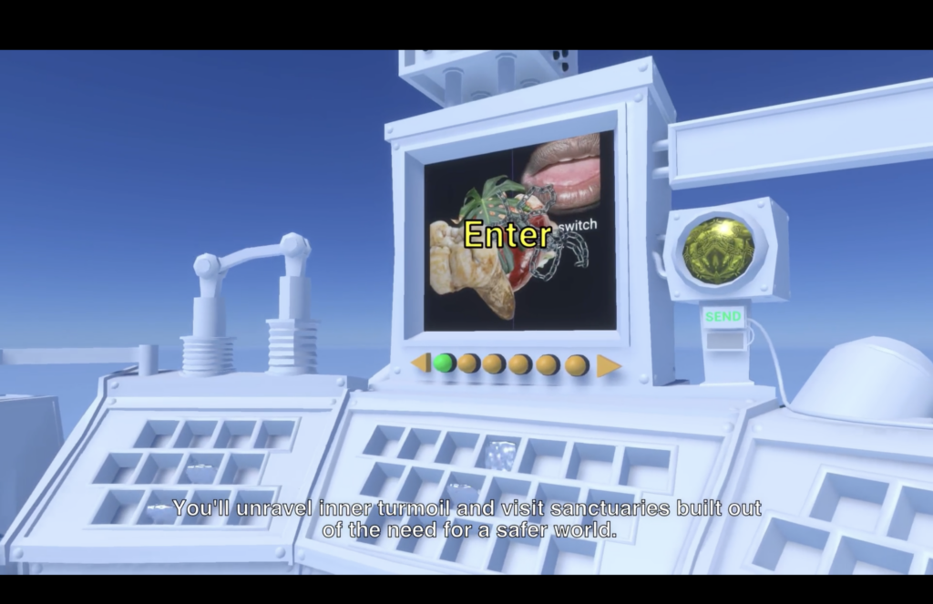 Dit spel dat Samuel ontwikkelde, cirkelt rond zeven sanctuaries, of veilige havens. Een van die havens wordt gevormd door een appartement vol planten. Daar ontmoeten we bewoner S., de avatar van Samuel, die instructies geeft hoe voor de planten te zorgen. Het heeft een vervreemde werking op me, omdat de doelmatige, meetbare agressie van de games van weleer hier ontbreekt. Als de player een plant verpot, een andere water heeft gegeven en weer een andere in het volle licht bij het raam heeft geplaatst, vertelt bewoner S. een verhaal – bij wijze van beloning of als teken van gewonnen intimiteit.