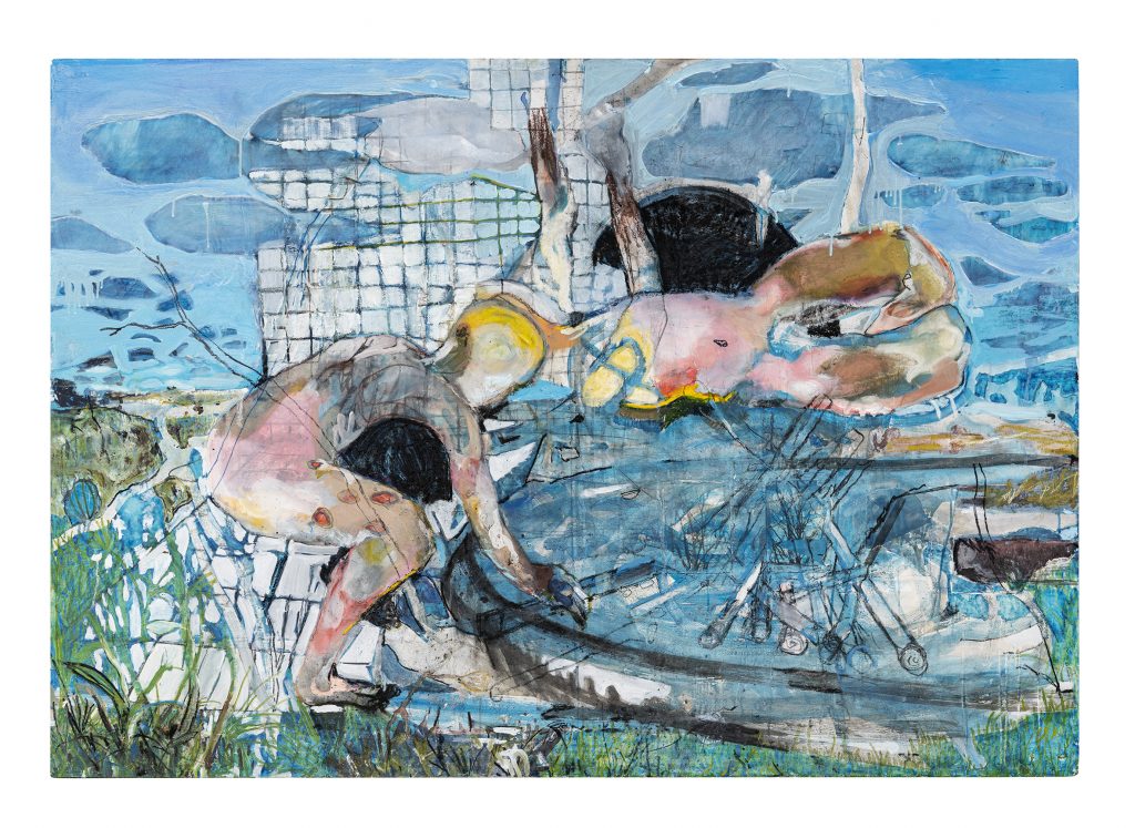 In een van zijn recente tekeningen, Within uit 2023, is de mens zelfs bijna niet te zien en toch voel je je in het werk opgenomen. Doordat het schilderij in zwart, wit en grijs acryl is geschilderd, doet het zich getekend voor. In een landschap van bomen en struiken is een fijnmazig hoog hek zichtbaar dat je het idee geeft dat je erdoor wordt omsloten en dat de ruimte ervoor en erachter van elkaar zijn gescheiden, terwijl ze toch een eenheid vormen. Sterker nog dan bij een schilderij waar een mens op de rug wordt gezien is hier het gevoel dat je op jezelf bent teruggeworpen.