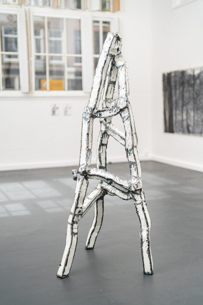 ‘Het EKWC is niet alleen een maakplek, maar vooral ook een ontwikkelplek en daar moet je wel de tijd voor nemen. Dat lukte eerst niet. In overleg heb ik die werkperiode toen uitgesteld en van december 2022 tot maart 2023 heb ik daar een heel goede tijd gehad. Ik maakte er radiotorens en zeven stoelen in keramiek en deed er ideeën op voor nieuw multimediaal werk. Ik wil weer dansperformances gaan maken om mezelf tussen mijn werk en de kijker te plaatsen. Ik denk na over een nieuwe film en projecten met muziek. Na de academie maakte ik een vijfjarenplan met te realiseren voornemens als: een eigen website, een solotentoonstelling, een museale presentatie, een betaalbaar atelier, het maken van een film en installaties, in contact staan met de kunstwereld en het maken van schilderijen als een constante onderstroom. Nu toont wat ik wil gaan maken zich niet zozeer in die schilderijen, maar eerder in objecten en installaties. Ik streef naar een museale solotentoonstelling in 2025. Op het programma staan nu een expositie bij Galerie Larik in Utrecht en een presentatie bij SEA Foundation in Tilburg.’