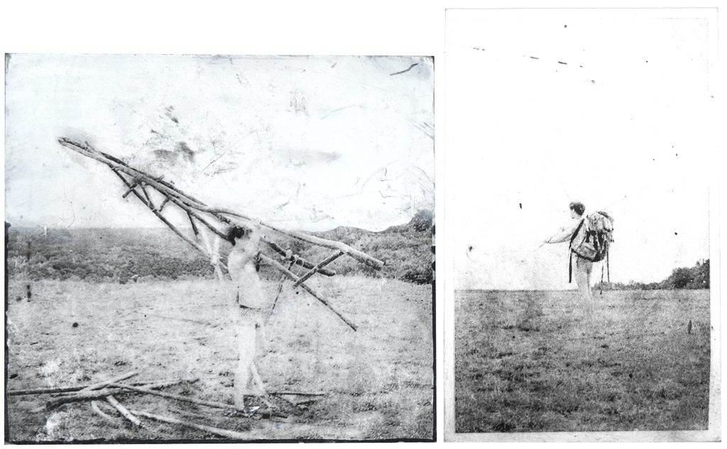 ‘Ik gebruik in mijn werk mijn eigen figuur en idealiter ook mijn positie in performances. Die staan tussen de echte wereld en mijn werk in. Deze echte wereld is er een van reflecties, posities, tussenruimtes en communicatieve middelen en daar beweegt mijn figuur zich als Rückenfigur tussendoor.