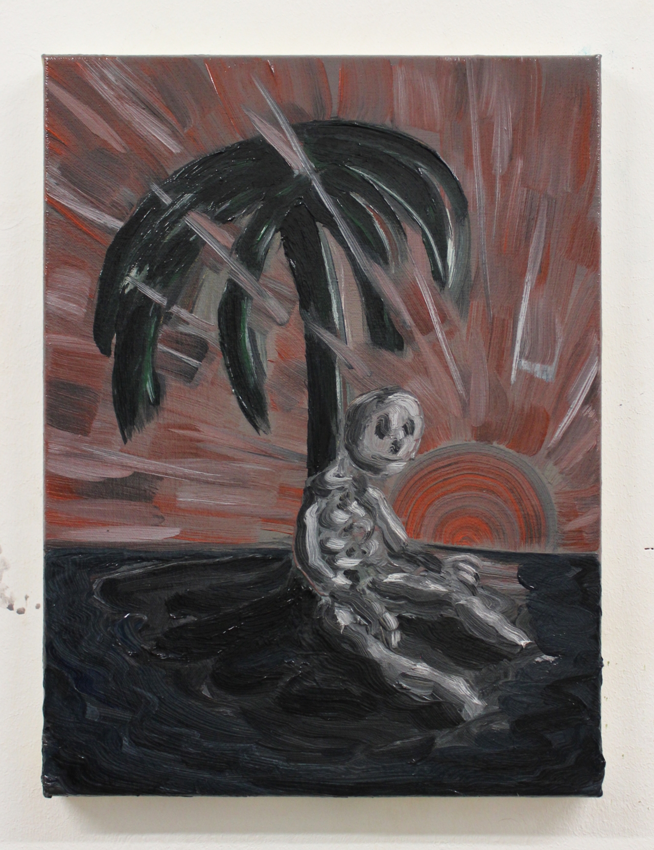 Duijf citeert niet alleen genretaferelen, hij haalt ook figuren aan uit lang vergeten volks folklore. Zo is zijn Vlezige schedel verwelkomt de aasgieren met zijn smakelijke glimlach een ode aan de snaakse Pierlala: Het bijdehante figuurtje uit Zuid-Nederlandse volksliedjes. Deze brutale vlegel laat zich begraven om uit het leger te komen om daarna vrolijk uit zijn doodskist te klimmen en mee te tetteren op zijn eigen begrafenisfeest. Op een slap geschilderd bordje ligt een grijnzende doodskop als etenswaar uitgestald. Rondvliegende aasgieren doen zich tegoed aan de laatste restjes vlees die nog op de schedel kleven. Ook hier is de verf weer pasteus aangebracht zodat het roodbruine vlees klonterig op het bot lijkt te liggen. De voorstelling is zowel macaber als humoristisch, we zien een doodskop als het vrolijke restant van een feestmaal. Het leven is met smaak verorberd en de grijnzende Pierlala heeft dezelfde genotzuchtige boodschap als al die anderen. Hij demonstreert vol verve dat we, corona of niet, allemaal binnen afzienbare de pijp uit gaan. Dus laten we het ervan nemen zolang het kan en genieten van de kleine geneugten die het leven ons biedt. Een luchtig en bemoedigend devies in deze angstige tijd waarin we allemaal noodgedwongen op de rem moeten staan. Er komt ooit weer een dag om te plukken, zoveel is zeker volgens Duijf.