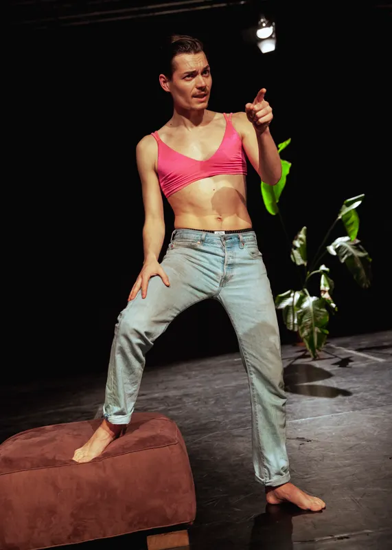 Een theatermonoloog waarin de rol van een zwangere vrouw wordt gespeeld door een man. Een gimmick of een referentie naar hoe mannelijke acteurs in Shakespeares tijd alle rollen op zich namen omdat het toneel voor vrouwen ontoegankelijk was. Maar dat lijkt niet te zijn waar schrijver Fien de Smet en acteur Luca Bötzel in Bakermatje naar zoeken.
