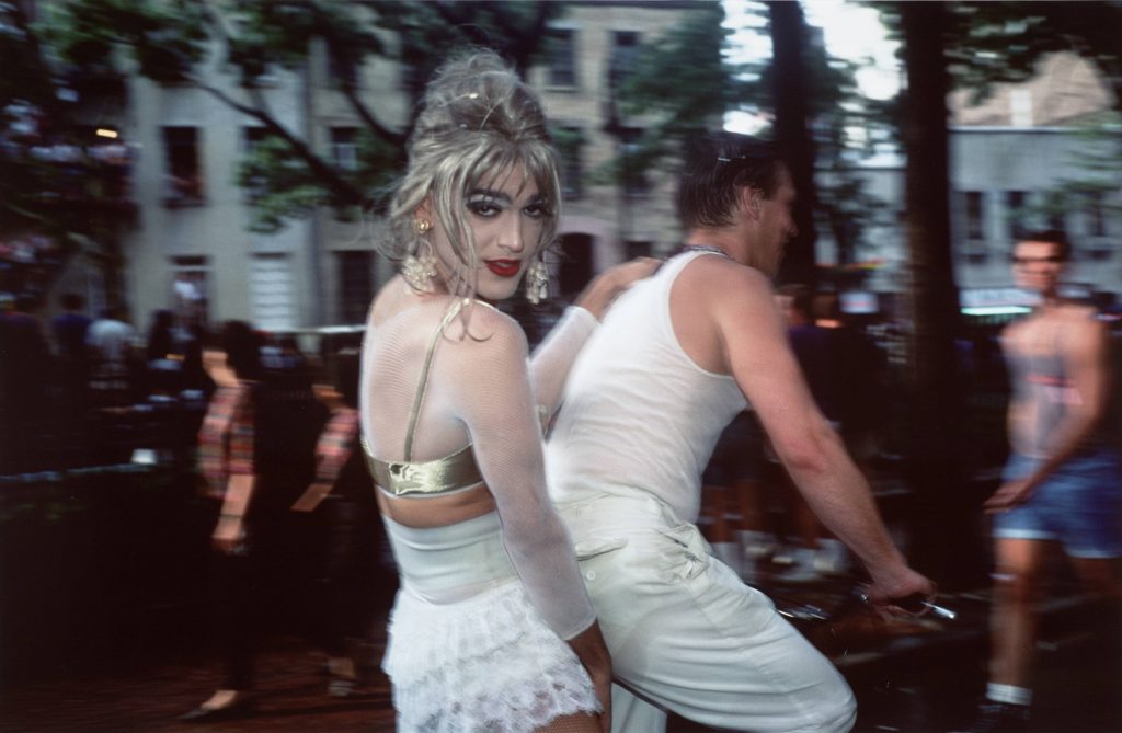 Er is veel te zien op de beelden waar onder meer New York en Provincetown in de jaren 70, 80 en 90 belangrijke decors zijn: paradijsvogels vol kleur en leven in bekende queer nachtclubs, hotelbedden gevuld met naakte, kronkelende lichamen, er wordt gedanst en gelachen en gehuild en gestruind door verlaten stadsdelen. Vrijwel iedere foto is gevuld met mensen – vooral afkomstig uit Goldins’ vrienden- en kennissenkring. Zelf is Goldin ook vaak onderdeel van de portretten. En zoals ze haar subjecten nietsontziend in vol ornaat toont, doet ze dat ook bij zichzelf: ze is te zien in onhandige, kwetsbare seksposities, na een nacht doorhalen met de lipstick rond haar opengehaalde mond gesmeerd. In elkaar geslagen door een ex-geliefde, haar gezicht blauw en opgeblazen, een wezenloze blik in haar door bloeduitstortingen omrande ogen.