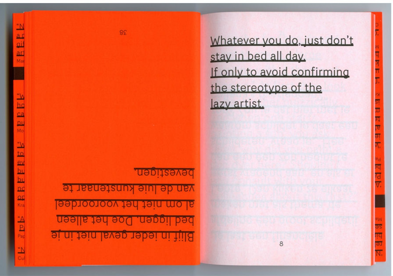 Blijf in ieder geval niet in je bed liggen. Doe het alleen al om niet het vooroordeel van de luie kunstenaar te bevestigen.