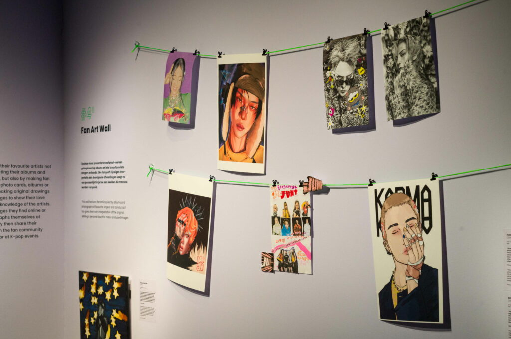 Bij de tentoonstelling presenteert het museum een muur met fan art. Fans konden na een oproep werk inzenden: hun illustraties van artiesten, veelal eigen interpretaties van bestaande foto’s. Door het democratische karakter van die muur dacht ik aan Minwha, traditionele Koreaanse folkloristische kunst. Minwha betekent letterlijk kunst van het volk. De tekeningen en schilderijen binnen dit genre werden van oudsher gemaakt door anonieme ambachtslieden volgens herkenbare conventies, thema’s en symbolen. Bekende subgenres zijn verstilde tekeningen van boekenkasten of van een tijger in dialoog met een ekster. Ook nu beoefenen veel mensen zonder kunstopleiding Minwha. Mijn Koreaanse tante bijvoorbeeld, die eens zei dat het haar een gevoel van rust geeft. Iedereen mag zich een Minwha-kunstenaar noemen.