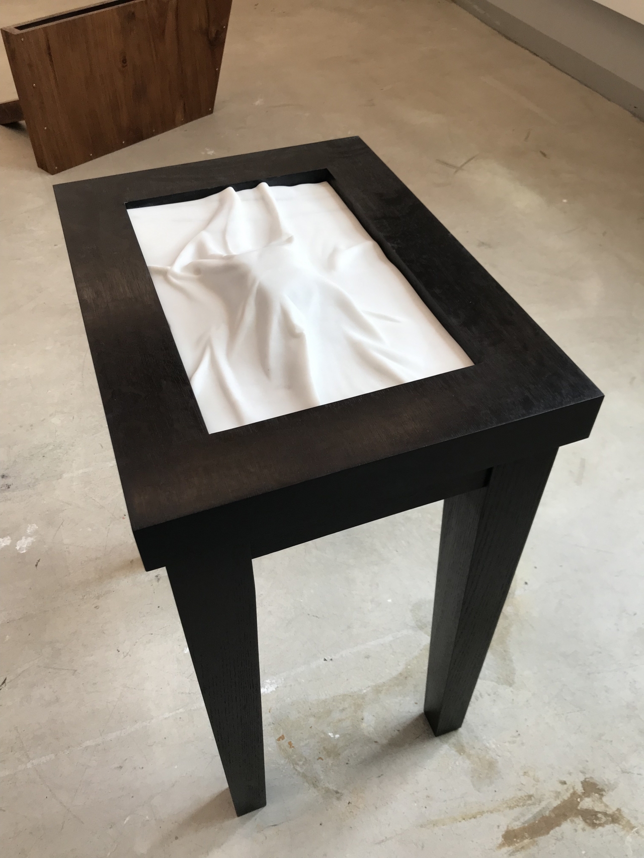 Kunstenaar Bart van Deelen vertrok voor een aantal maanden naar Griekenland om daar marmer te hakken en het te leren bewerken. Onder andere deze tafel is het resultaat van die reis. Op de tafel lijkt iets te liggen – wat dat is kan de toeschouwer niet weten – en daarover heen is een tafelkleed gedrapeerd. Een tafelkleed van marmer weliswaar. Bart van Deelen zet de toeschouwer op het verkeerde been door eigenschappen aan het marmer toe te schrijven die het oorspronkelijk niet heeft, zoals zachtheid, kreukeligheid, of luchtigheid.