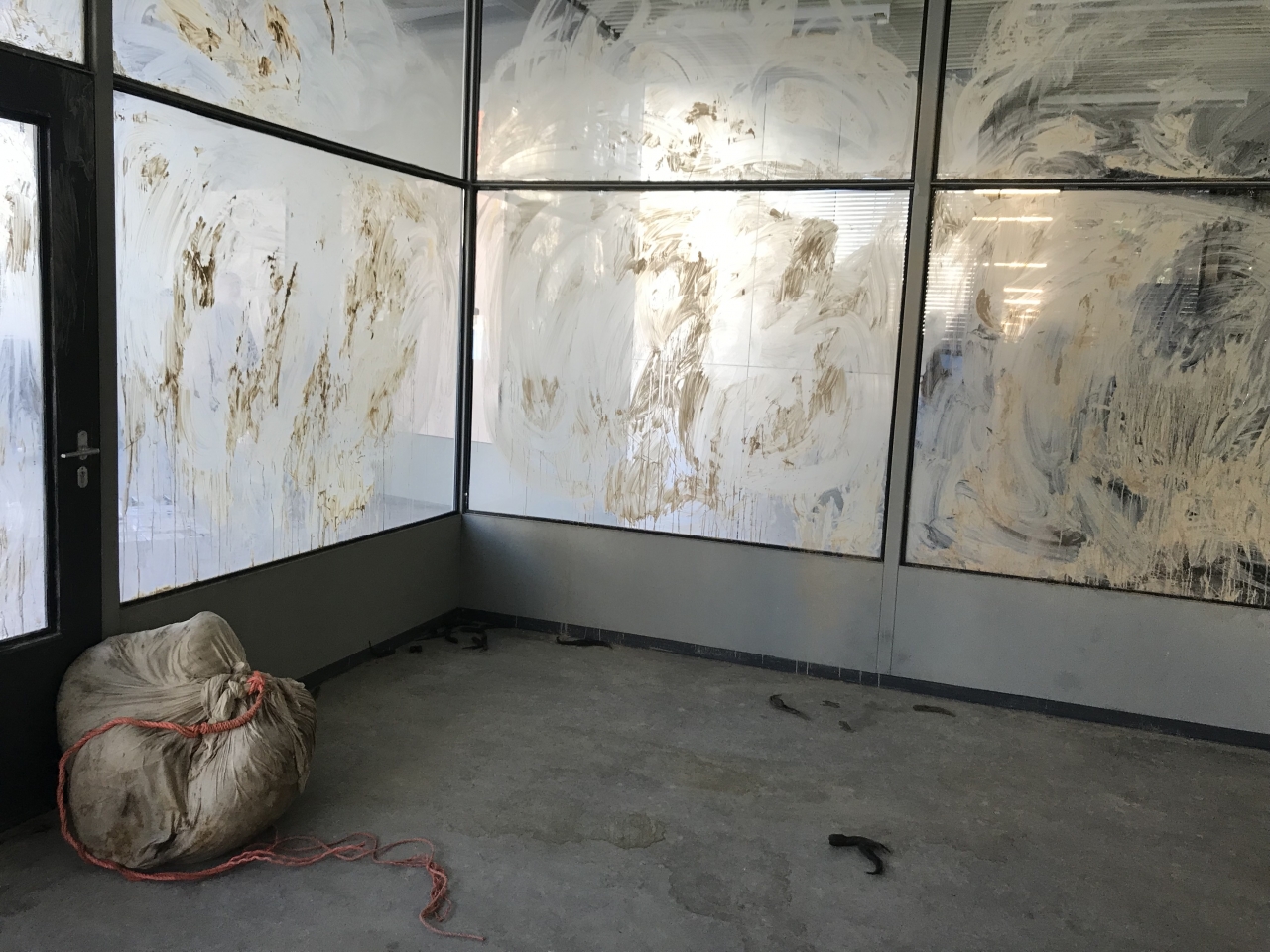 Wat heeft zich afgespeeld in deze ruimte? Zat er iemand in de ruimte opgesloten die door waanzin geteisterd werd? En waar is die persoon nu? De titel van het werk suggereert dat sommige mensen bang zijn voor de leegte. Een dergelijk iemand heeft op de ramen van deze ruimte de afdrukken van zijn angst achtergelaten.