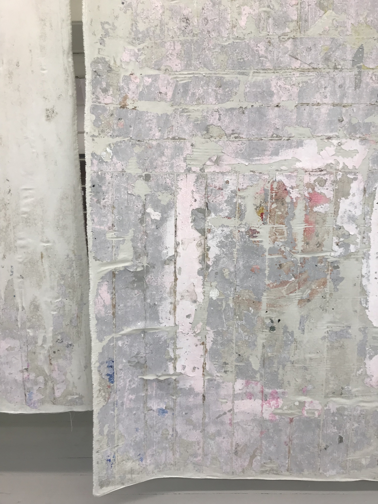 Voor Pleun Moons definieert iedere laag, ieder merkteken en iedere actie de tijd: alomtegenwoordigheid, afzonderlijke momenten, gelijktijdigheid of juist de afwezigheid van tijd. In haar afstudeerwerk zijn lagen en verschillende acties duidelijk aanwezig. De metershoge doeken zijn de dragers van een afdruk en daarmee van de acties die de kunstenaar uitvoerde: ze bracht de doeken naar alle waarschijnlijkheid met verf aan op de vloer en trok ze vervolgens weer los zodra de verf opgedroogd was. Hiermee is het werk een representatie van de werkelijkheid en het verloop van de tijd daarin. Tegelijkertijd zijn de doeken juist abstract, omdat de dikke lagen verf alleen naar zichzelf lijken te verwijzen.