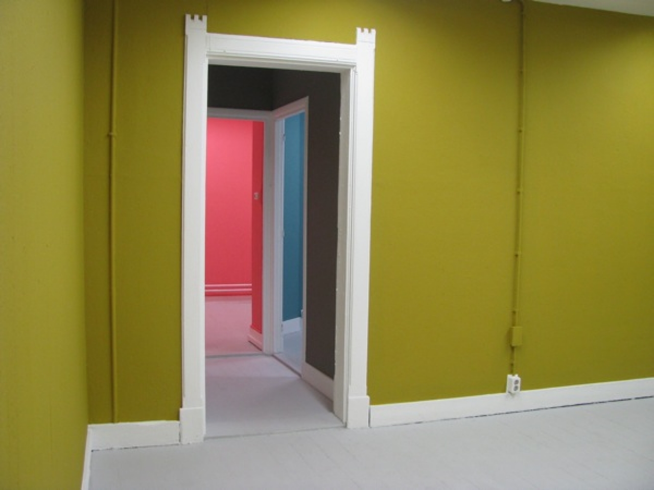 Stef van den Dungen heeft iets met kleur en wanden; op de benedenverdieping had hij de witte wanden doorzeefd met boorgaten terwijl de muren van de kleine kamertjes van de bovenverdieping iedere een andere kleur hadden gekregen. Elke kamer droeg de naam van twee voetvalclubs uit een land, zo heette de roze kamer “Ajax – Feyenoord”, en de aquablauwe kamer “Celtic – Rangers”. De kleuren in combinatie met de landen waaruit de voetbalclubs komen, gaven een andere beleving van de ruimten.