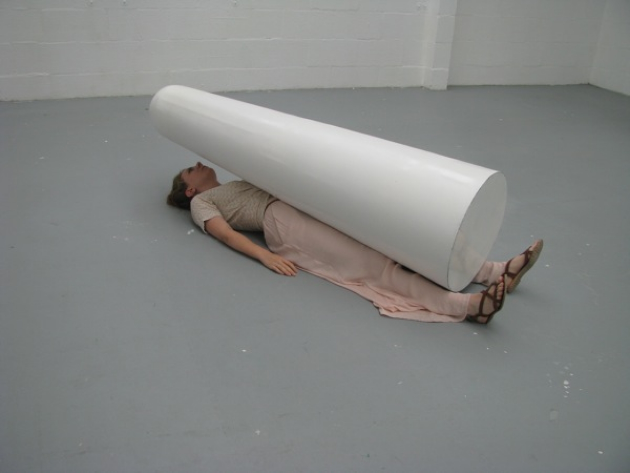Merel Stolker was een van de performers pur sang op deze academie en trad meerdere keren per uur op, de hele dag door. Telkens was zij te zien met een paalvormig object, dat groter dan zij was. Soms lag zij erop, soms eronder, dan weer knuffelde zij het, of stootte zij het af waardoor het object gevaarlijk balancerend in de ruimte heen en weer wiebelde. De associatie met de mannelijk fallus is snel te maken, maar daar was het haar ook enerzijds om te doen.