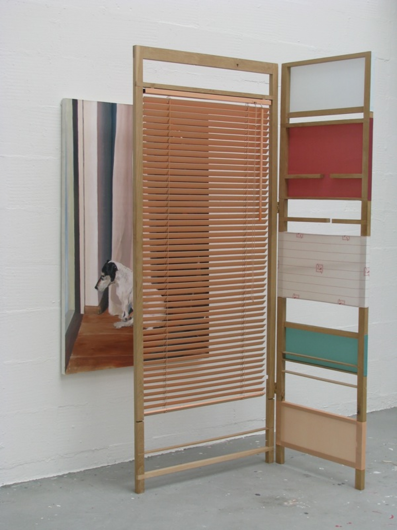 Thom Brand toonde in dezelfde ruimte zijn geschilderde en ruimtelijke werken. De laatsten leken wel kledingrekken en kamerschermen te zijn, soms met luxaflex dan met doek waarop de schaduw van een boom te zien was, maar ook was er een kamerscherm dichtgevouwen en was er een klimopplant ingeklemd, wel eentje met bloemen! De schilderwerken werden bijna niet autonoom getoond, maar altijd in combinatie met een ruimtelijk werk ervoor. Het dubbelzinnige van zijn werk, soms letterlijk twee maal bijna hetzelfde schilderij, dan weer een spel tussen echt en nep (de mooie boomschaduw werd gecreëerd door een lullige achterkant; klimop heeft natuurlijk nooit bloemen), zette je als kijker telkens op het verkeerde been.