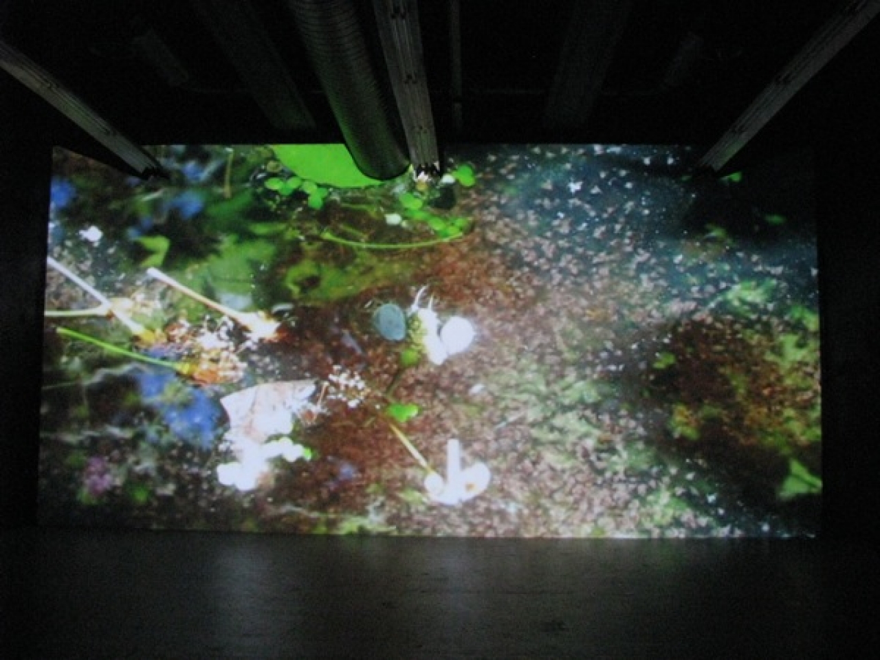 Merel Dames en Akke Houben werken samen en toonden twee videowerken. Het werk “Daphnia” maakte de meeste indruk; op een groot scherm was een stuk rustig stromend water te zien. De camera was zeer dicht op een punt van het wateroppervlak gericht, dankzij het kabbelende en soms ietwat kolkende water was er toch continue beweging in beeld. Blaadjes van bomen en bloemen dreven voorbij, kleine krioelende beestjes zoals watervlooien (dahpnia) waren zichtbaar in het water. Een mooie film als je even wilt onthaasten, het kabbelt maar voort en voort.