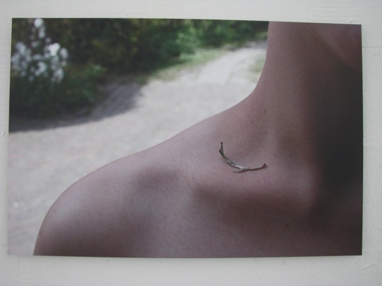 Iris Hofland is gefascineerd door de natuur, in al haar werken was een stukje natuur opgenomen. Ze toonde een tekst, foto’s, video en een tafel vol varens die hun sporen op de grond hadden laten vallen. Vooral de meer poëtische fototwerken vielen op zoals de foto van een eikenzwam (lijkend op een geboetseerd stuk klei) die ze voor haar blote buik hield, of het kleine botje van een specht dat ze fotografeerde, balancerend op haar eigen sleutelbeen.